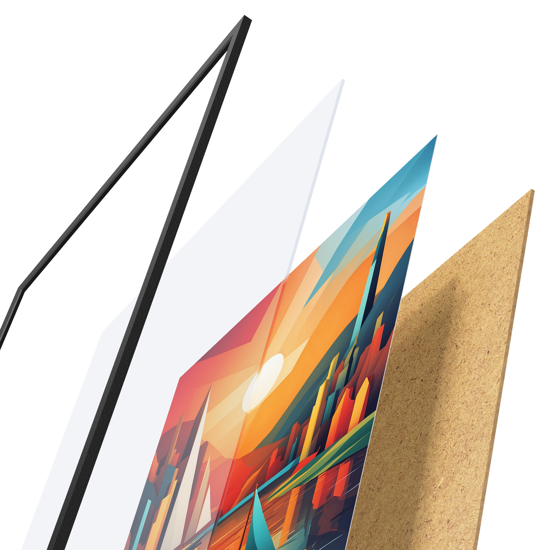 Plakatą sudaro rėmas, pleksiklas, atspausdintas vaizdas ir medžio drožlių plokštės pagrindas. Plakatą galima iš karto pakabinti ant sienos dėl kitoje pusėje esančių laikiklių.