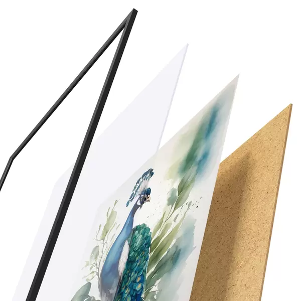Plakatą sudaro rėmas, pleksiklas, atspausdintas vaizdas ir medžio drožlių plokštės pagrindas. Plakatą galima iš karto pakabinti ant sienos dėl kitoje pusėje esančių laikiklių.