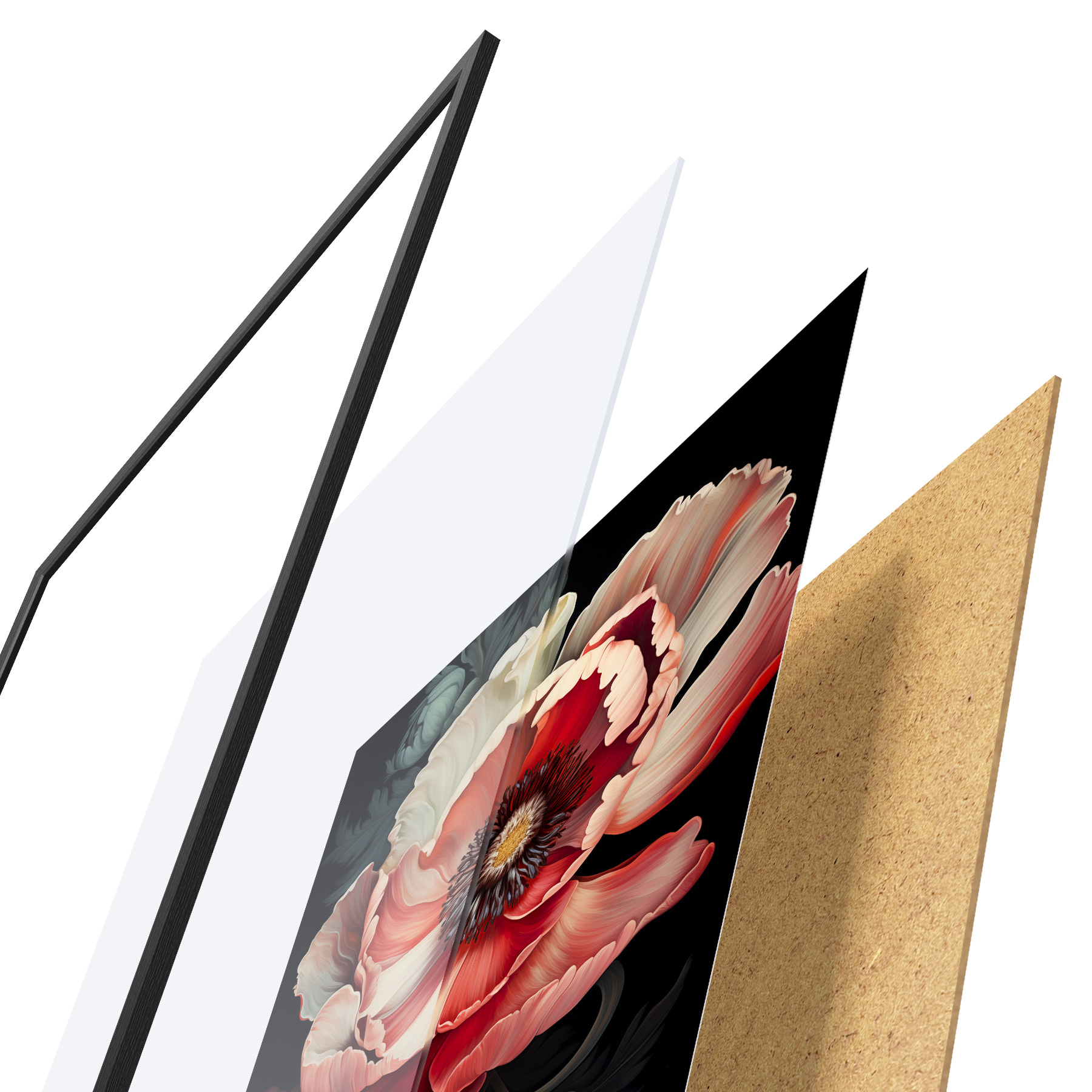 Plakatą sudaro rėmas, pleksiklas, atspausdintas vaizdas ir medžio drožlių plokštės pagrindas. Plakatą galima iš karto pakabinti ant sienos dėl kitoje pusėje esančių laikiklių.