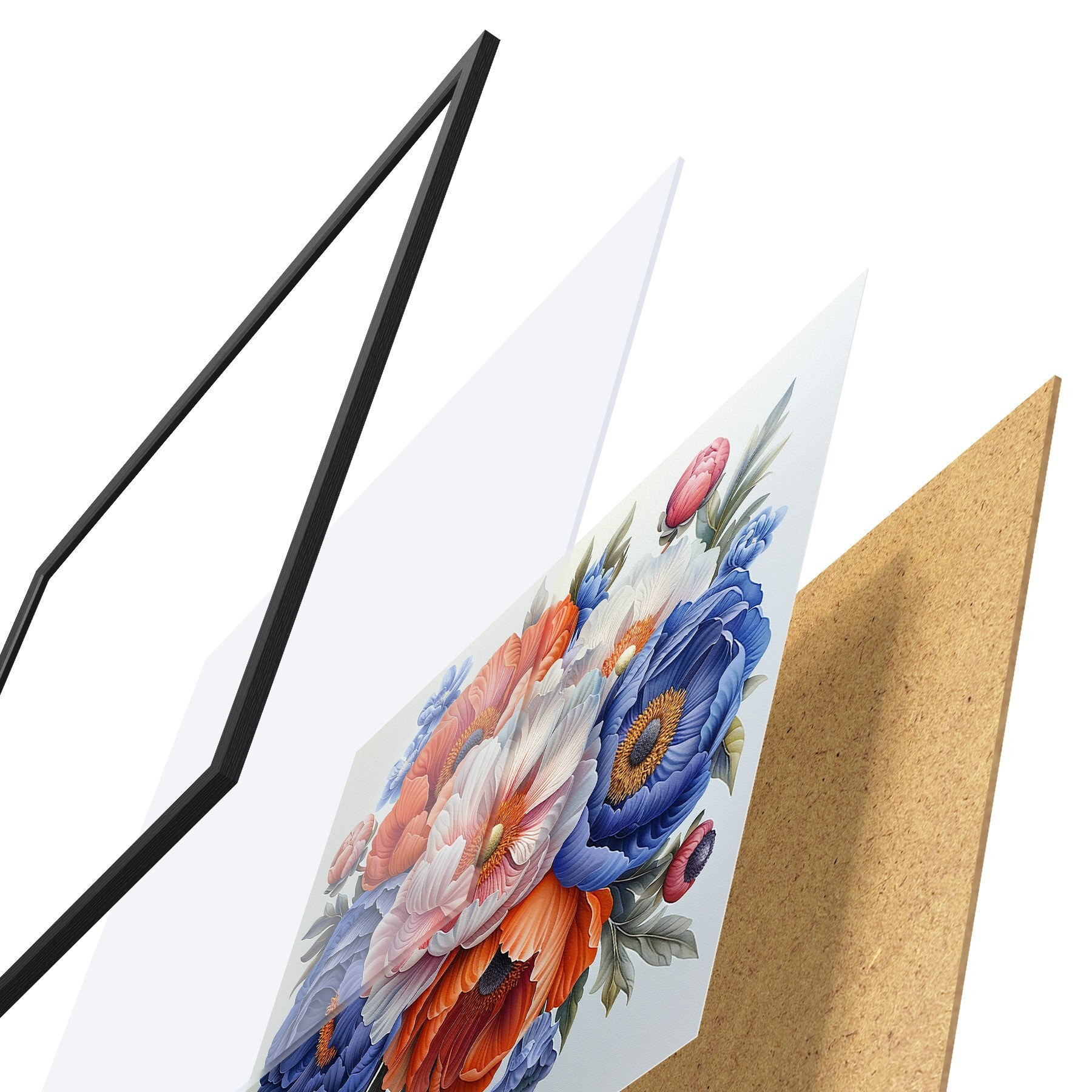 Plakatą sudaro rėmas, pleksiklas, atspausdintas vaizdas ir medžio drožlių plokštės pagrindas. Plakatą galima iš karto pakabinti ant sienos dėl kitoje pusėje esančių laikiklių.