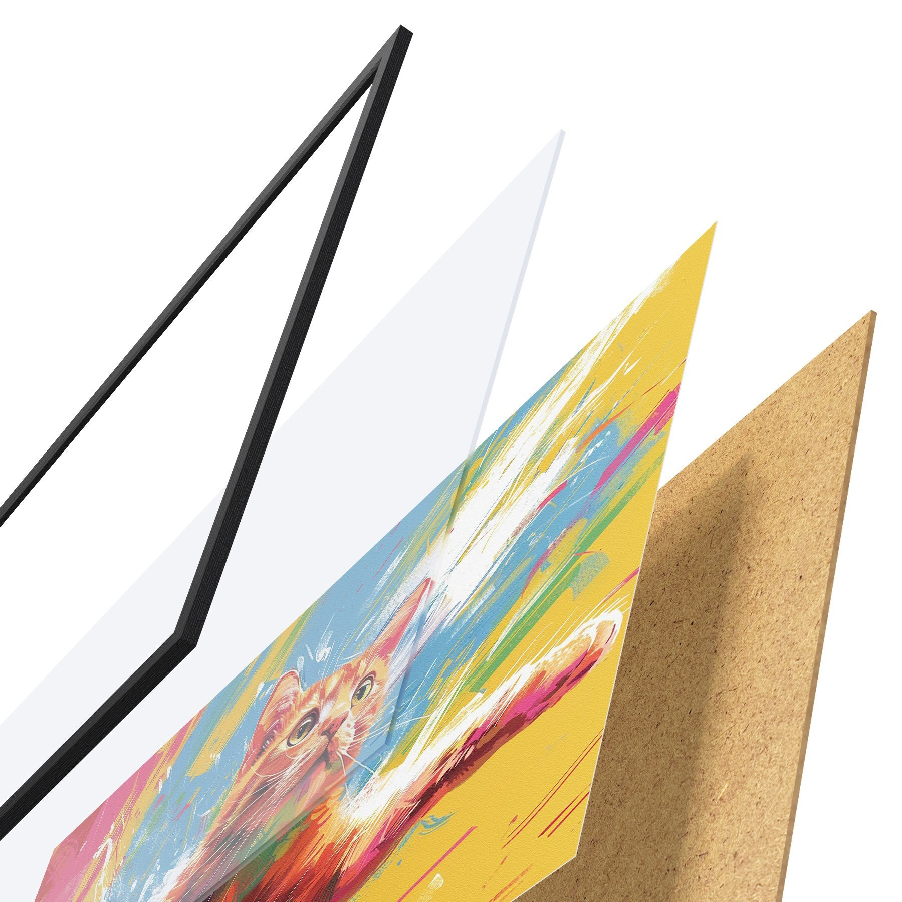 Plakatą sudaro rėmas, pleksiklas, atspausdintas vaizdas ir medžio drožlių plokštės pagrindas. Plakatą galima iš karto pakabinti ant sienos dėl kitoje pusėje esančių laikiklių.