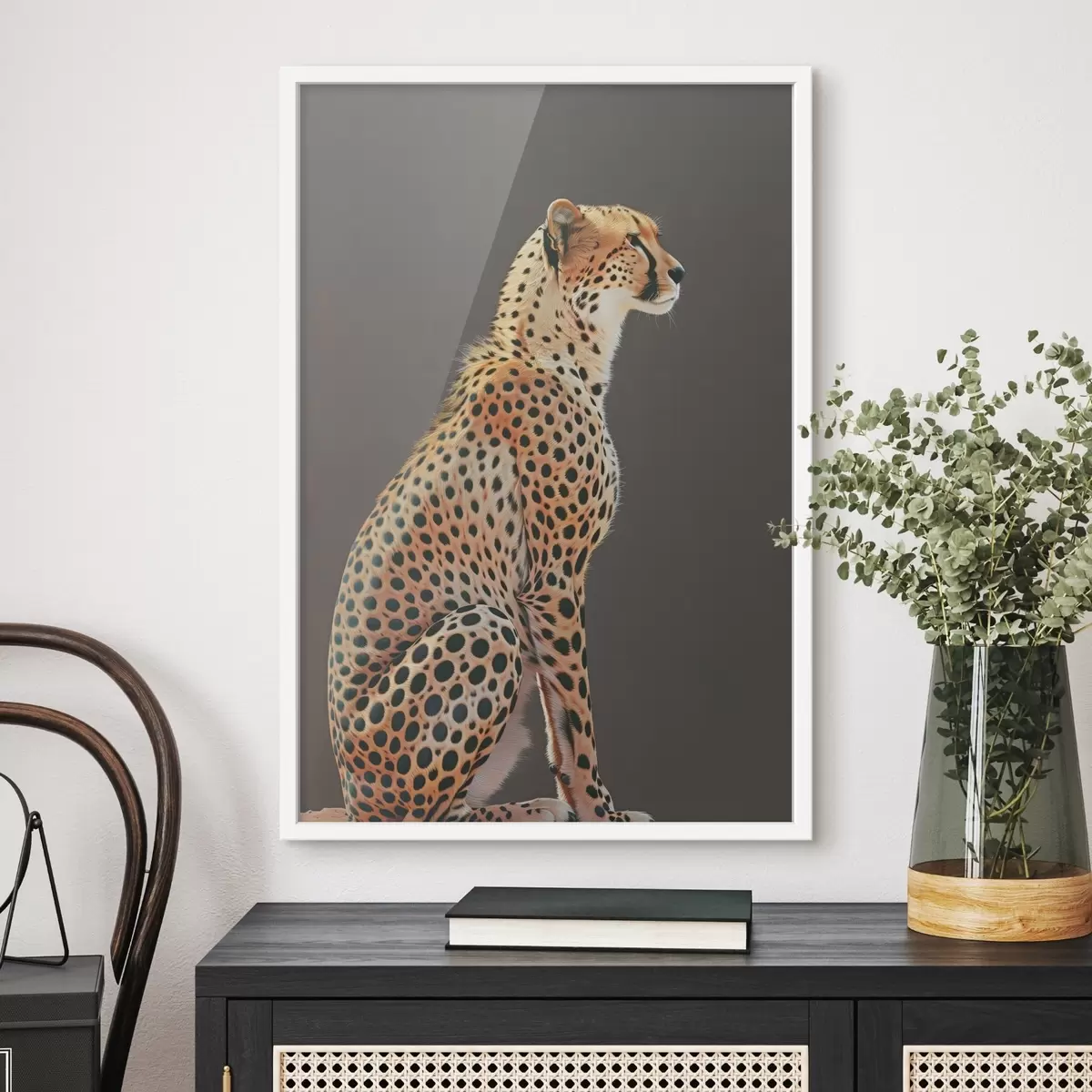 Plakatas Gepardas sėdi ir žiūri į tolį f38256