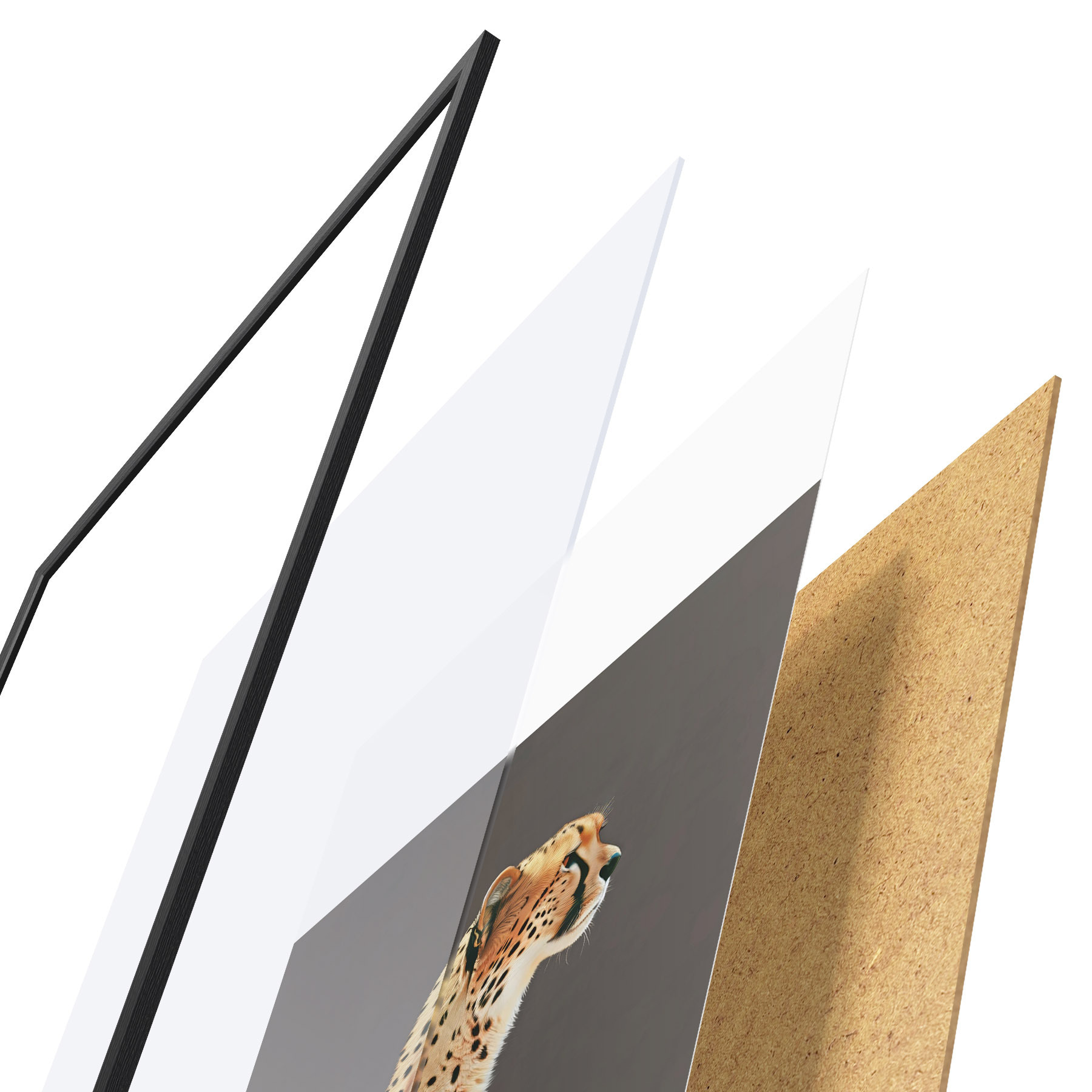 Plakatą sudaro rėmas, pleksiklas, atspausdintas vaizdas ir medžio drožlių plokštės pagrindas. Plakatą galima iš karto pakabinti ant sienos dėl kitoje pusėje esančių laikiklių.