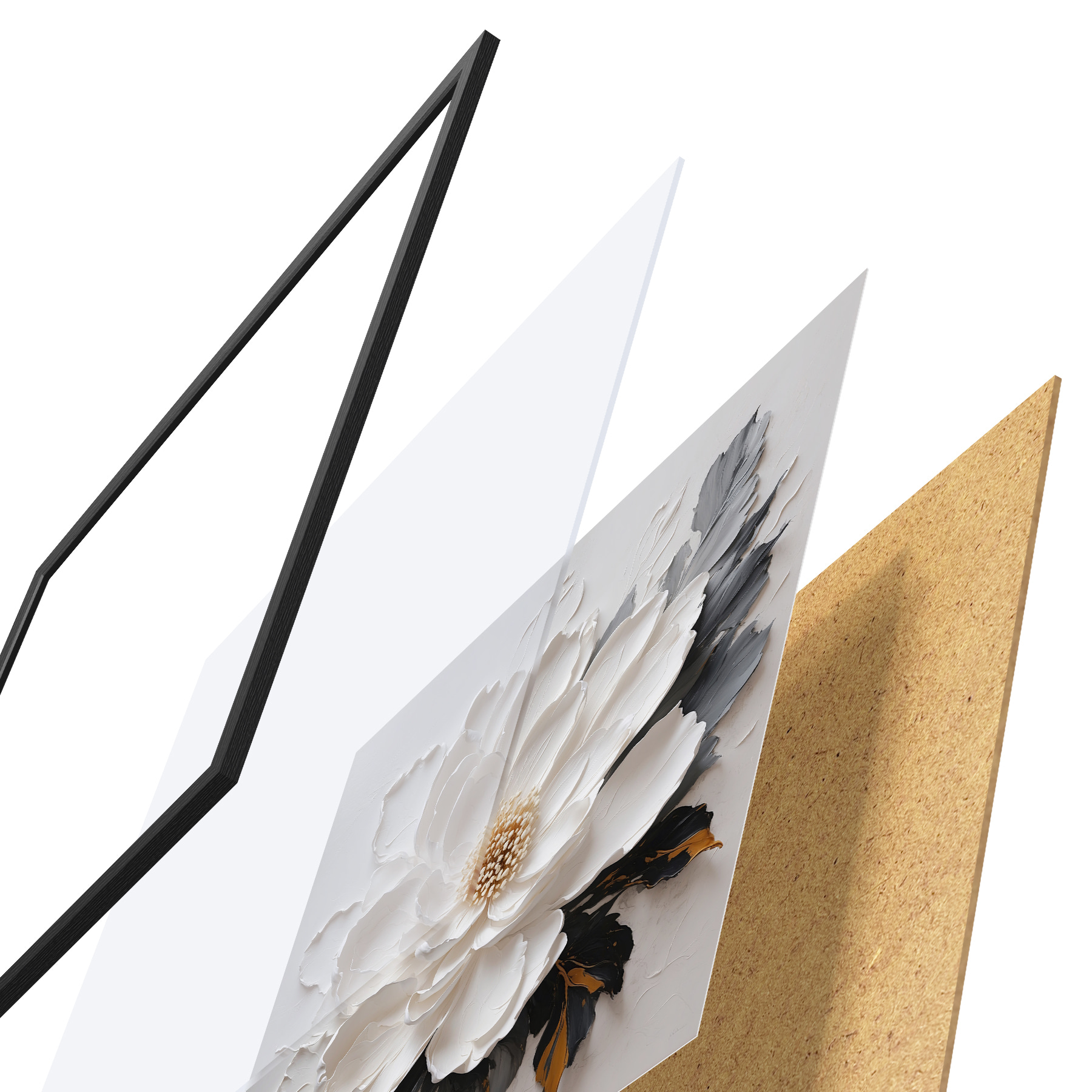 Plakatą sudaro rėmas, pleksiklas, atspausdintas vaizdas ir medžio drožlių plokštės pagrindas. Plakatą galima iš karto pakabinti ant sienos dėl kitoje pusėje esančių laikiklių.