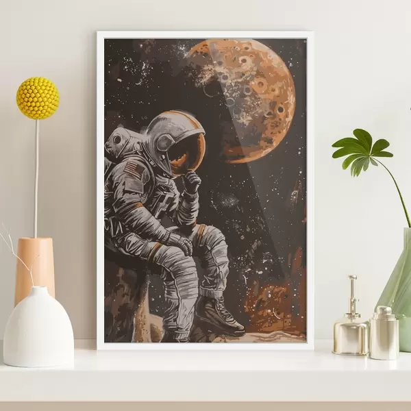 Plakatas Astronautas, sėdintis ant uolos f38316