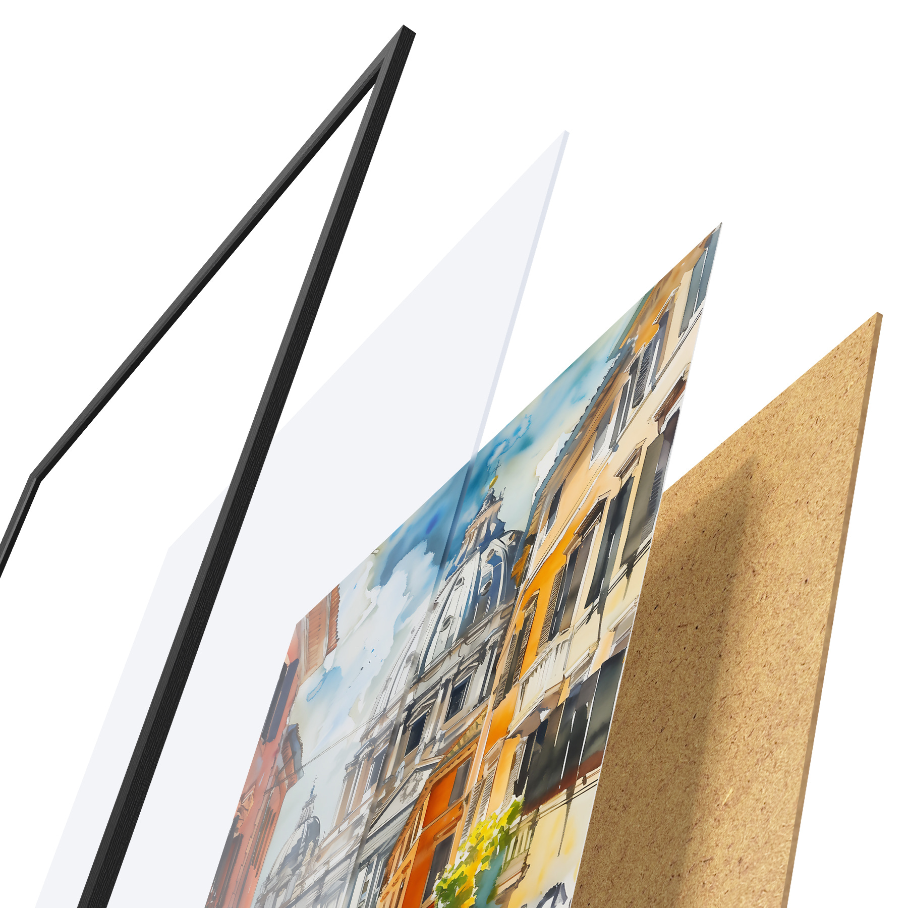 Plakatą sudaro rėmas, pleksiklas, atspausdintas vaizdas ir medžio drožlių plokštės pagrindas. Plakatą galima iš karto pakabinti ant sienos dėl kitoje pusėje esančių laikiklių.