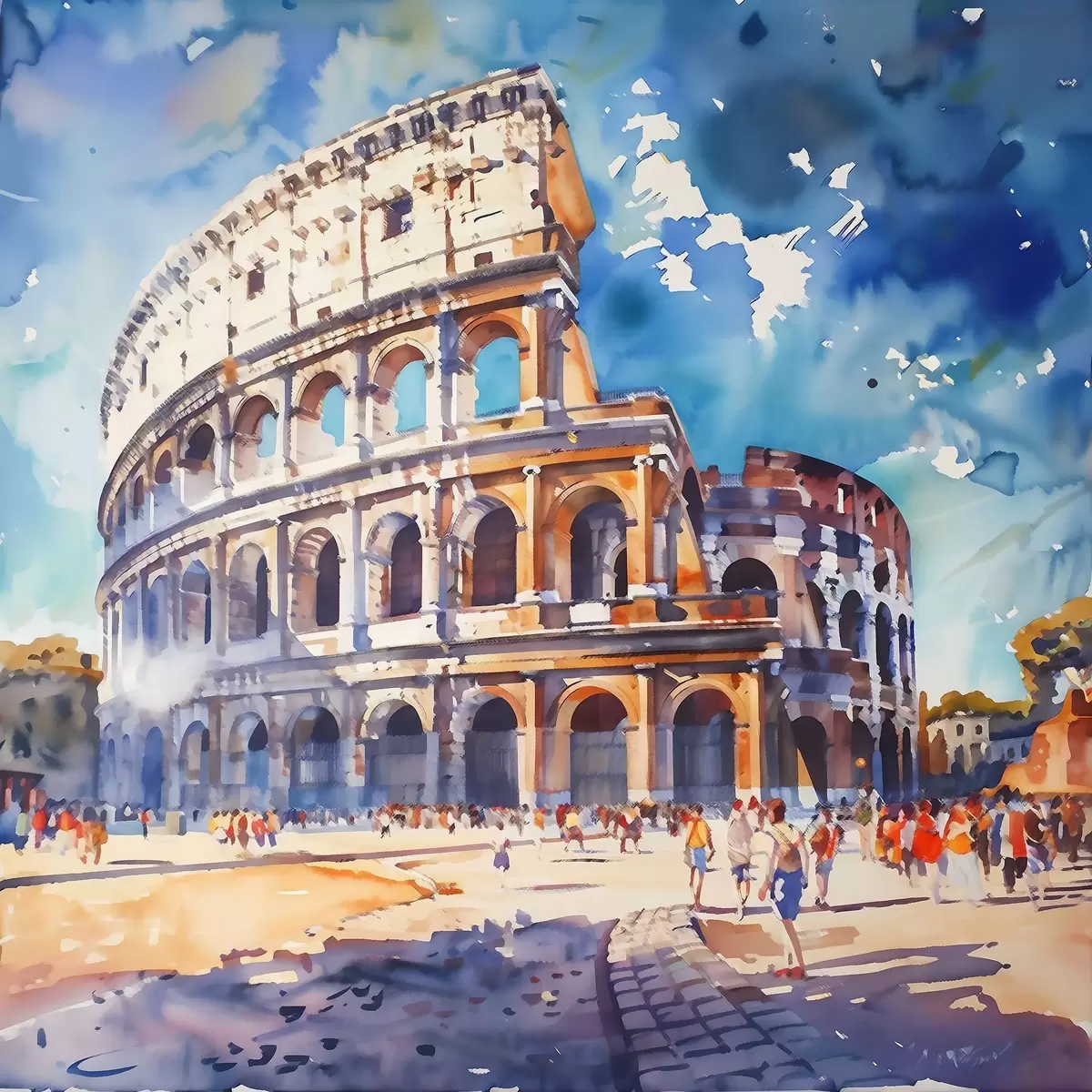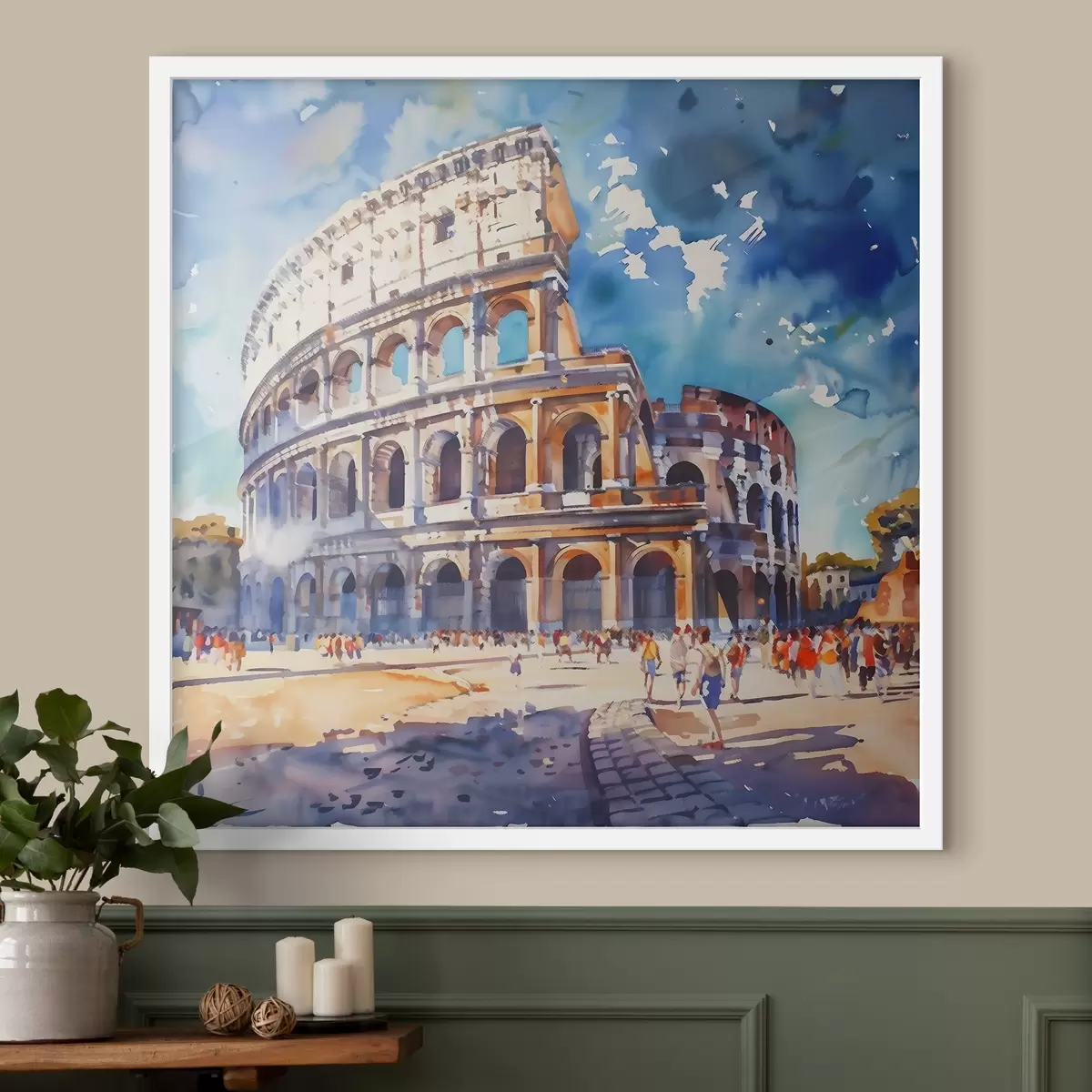 Plakatas Akvarelė, vaizduojanti didelį pastatą su daugybe arkų f38326