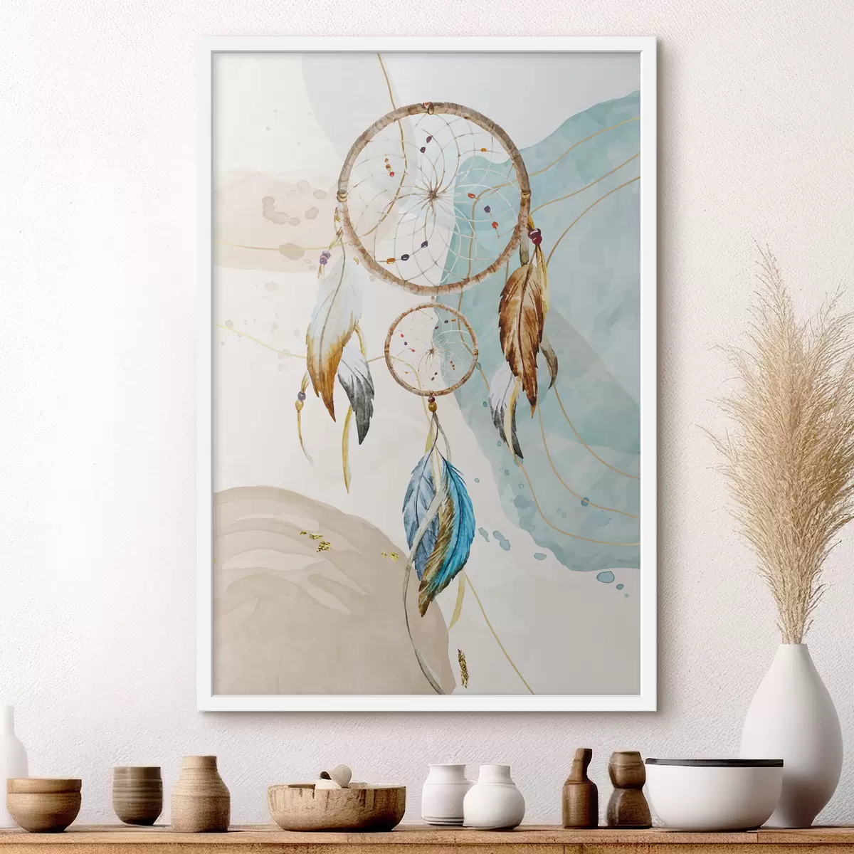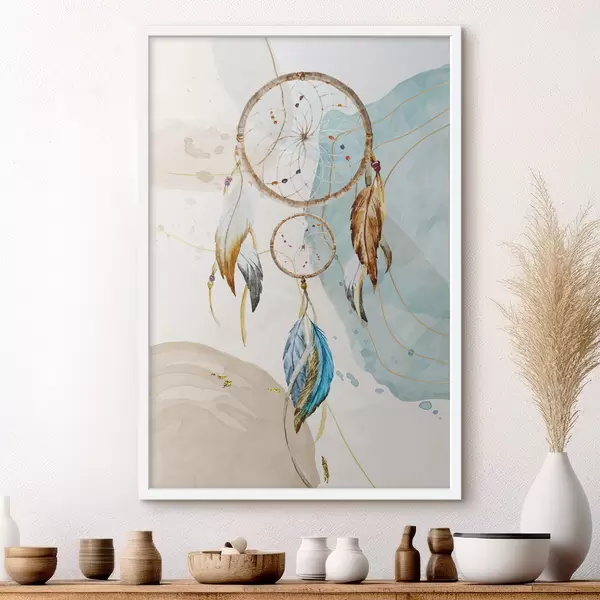 Plakatas akvarelė, sapnų gaudyklė, plunksnos, pastelė f38330