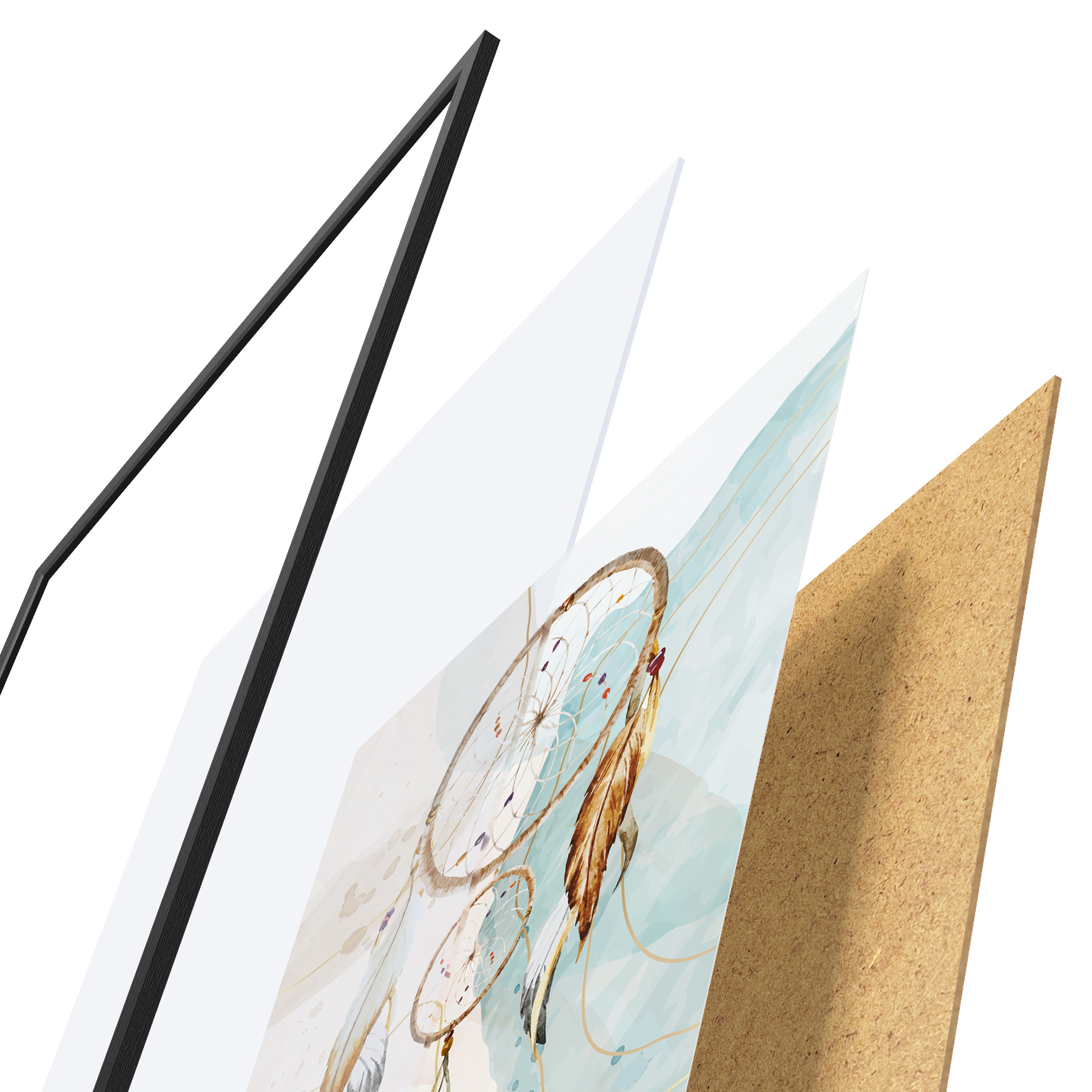 Plakatą sudaro rėmas, pleksiklas, atspausdintas vaizdas ir medžio drožlių plokštės pagrindas. Plakatą galima iš karto pakabinti ant sienos dėl kitoje pusėje esančių laikiklių.