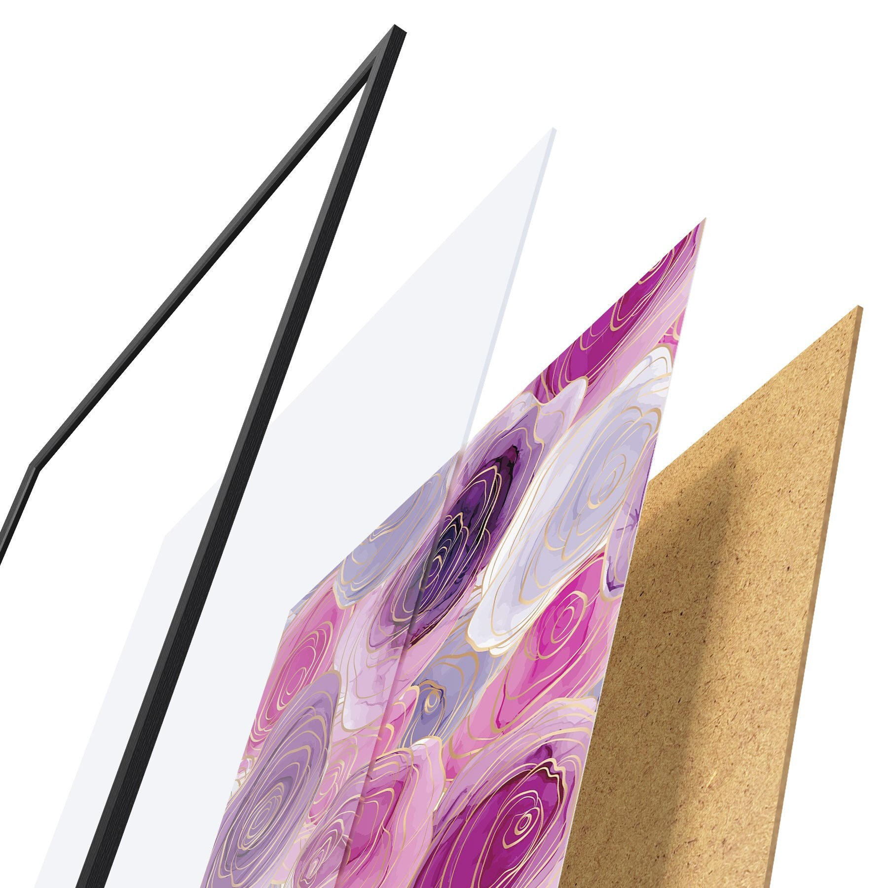Plakatą sudaro rėmas, pleksiklas, atspausdintas vaizdas ir medžio drožlių plokštės pagrindas. Plakatą galima iš karto pakabinti ant sienos dėl kitoje pusėje esančių laikiklių.