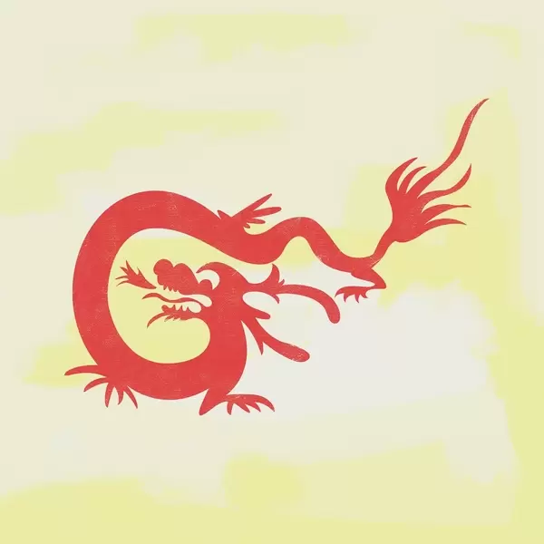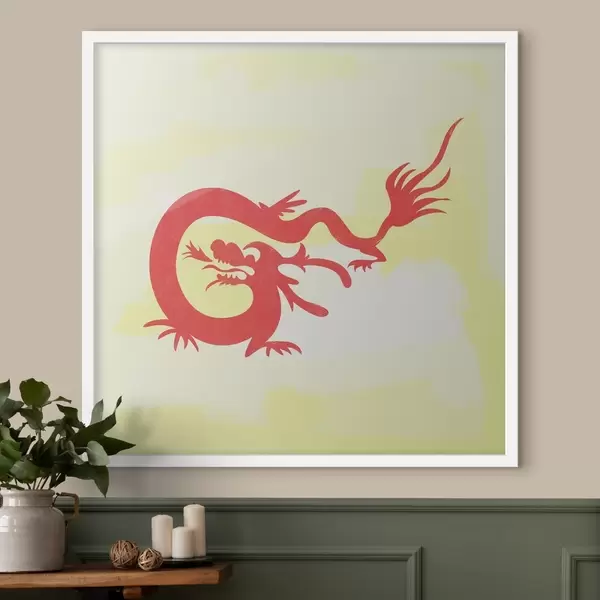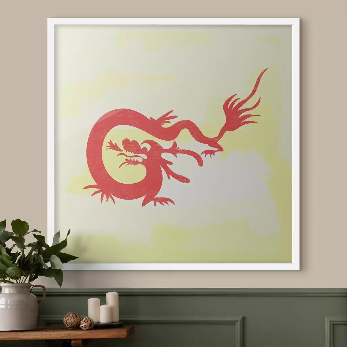 Plakatas Raudonas drakonas geltoname fone Ne f38338