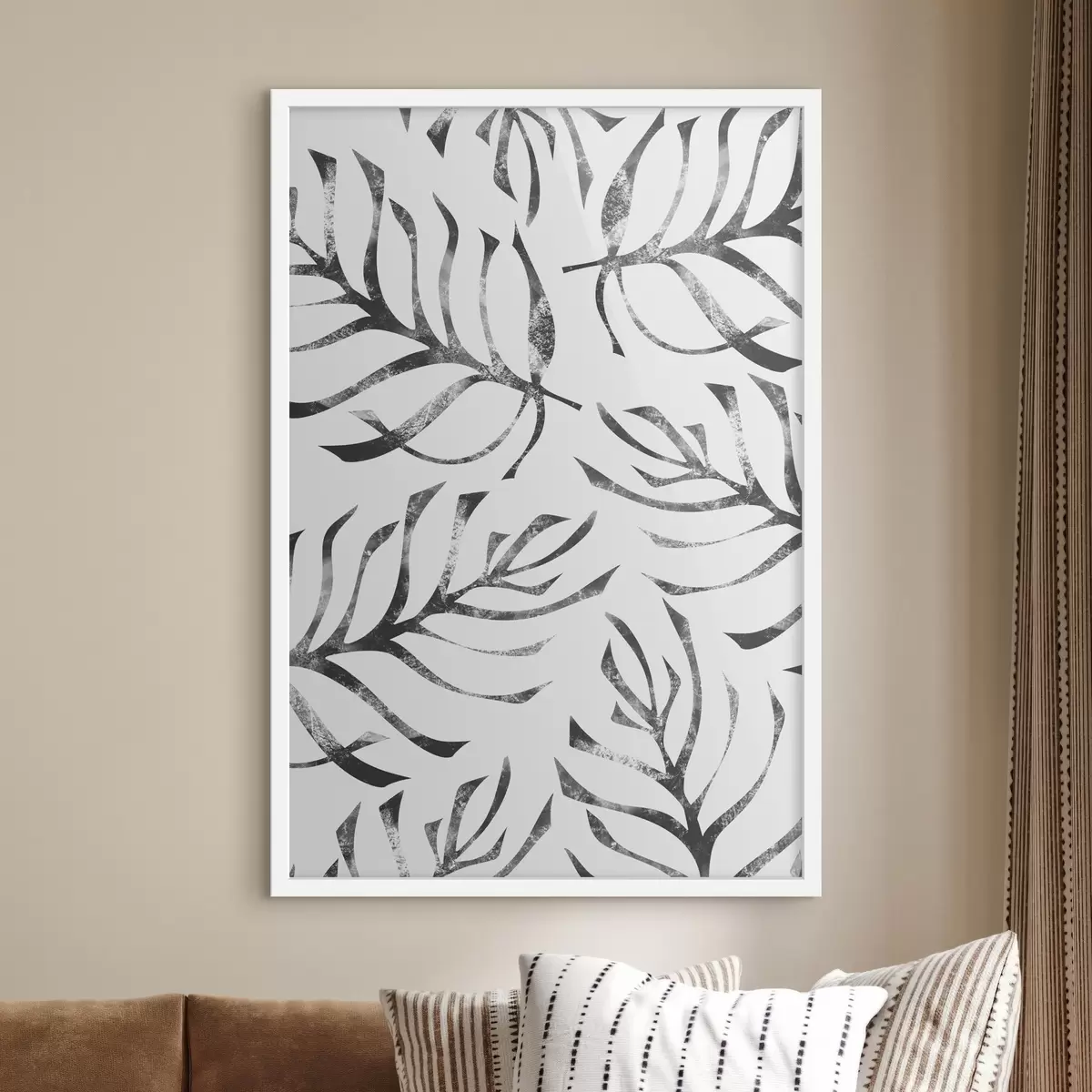 Plakatas Lapų raštas baltame fone Ne f38340