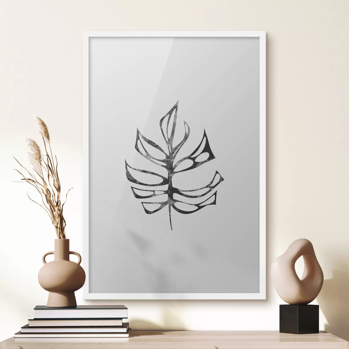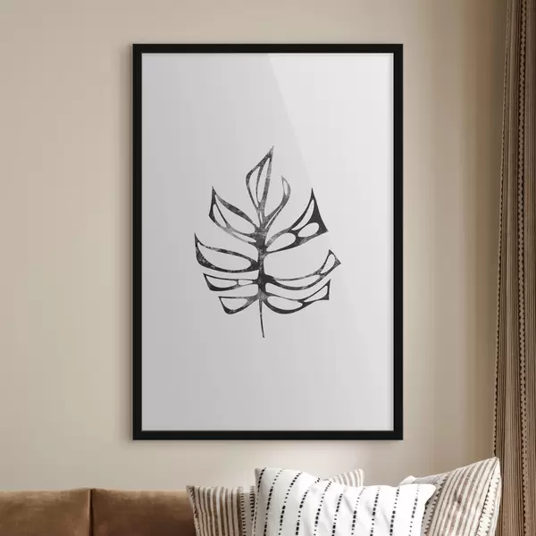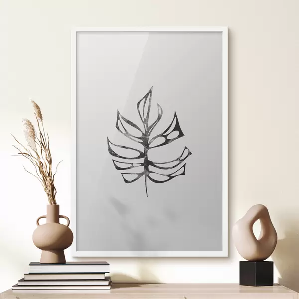 Plakatas Dekoratyvinė paklodė su įpjovomis ir skylutėmis, tropinė, tekstūruotos juodos spalvos, minimalizmo, gėlių f38342