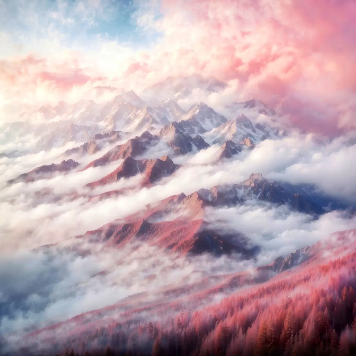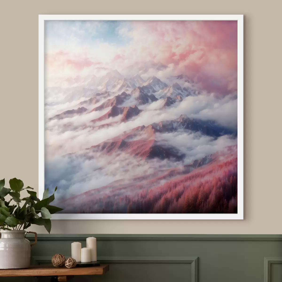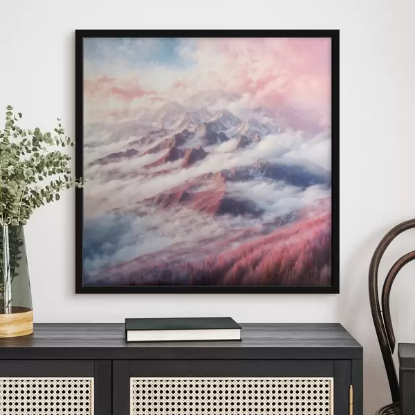 Plakatas Kalnų masyvas su debesimis ir medžiais f38358