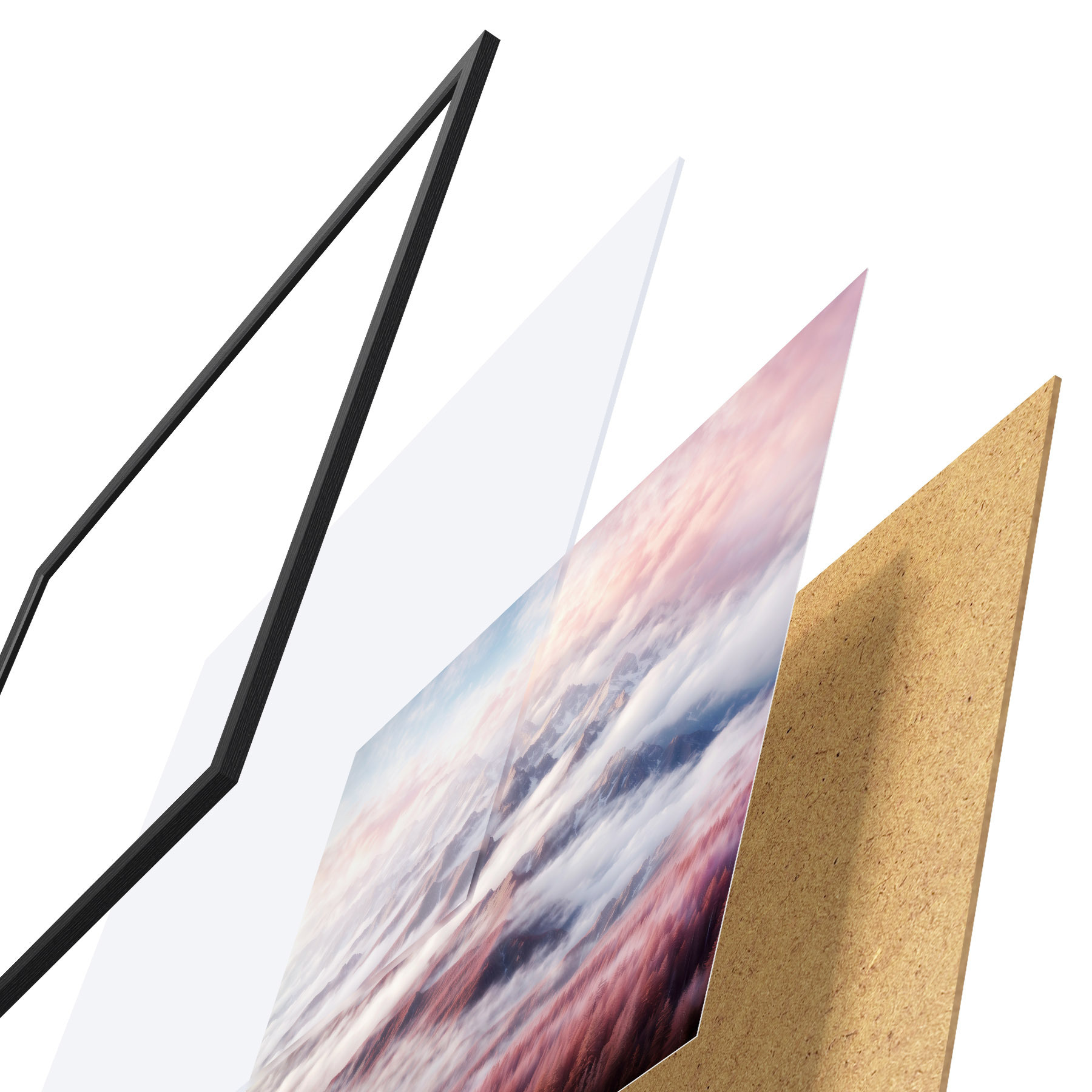 Plakatą sudaro rėmas, pleksiklas, atspausdintas vaizdas ir medžio drožlių plokštės pagrindas. Plakatą galima iš karto pakabinti ant sienos dėl kitoje pusėje esančių laikiklių.