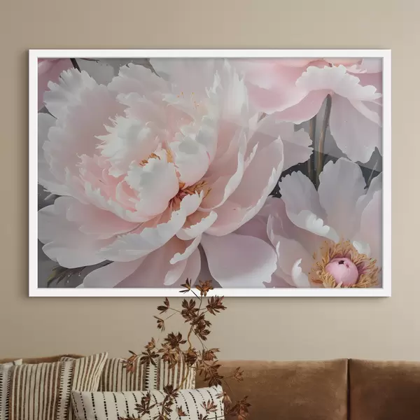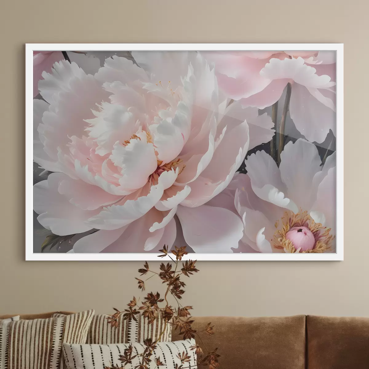 Plakatas Didelių, švelnių rožinių bijūnų žiedų tamsiame fone stambiu planu f38363