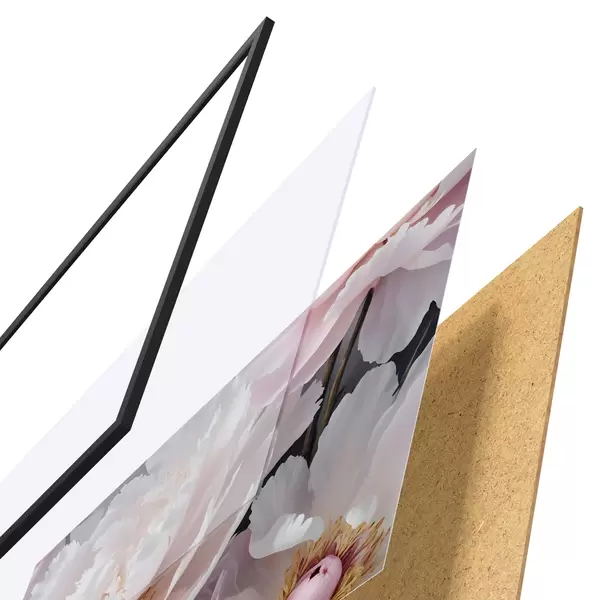 Plakatą sudaro rėmas, pleksiklas, atspausdintas vaizdas ir medžio drožlių plokštės pagrindas. Plakatą galima iš karto pakabinti ant sienos dėl kitoje pusėje esančių laikiklių.