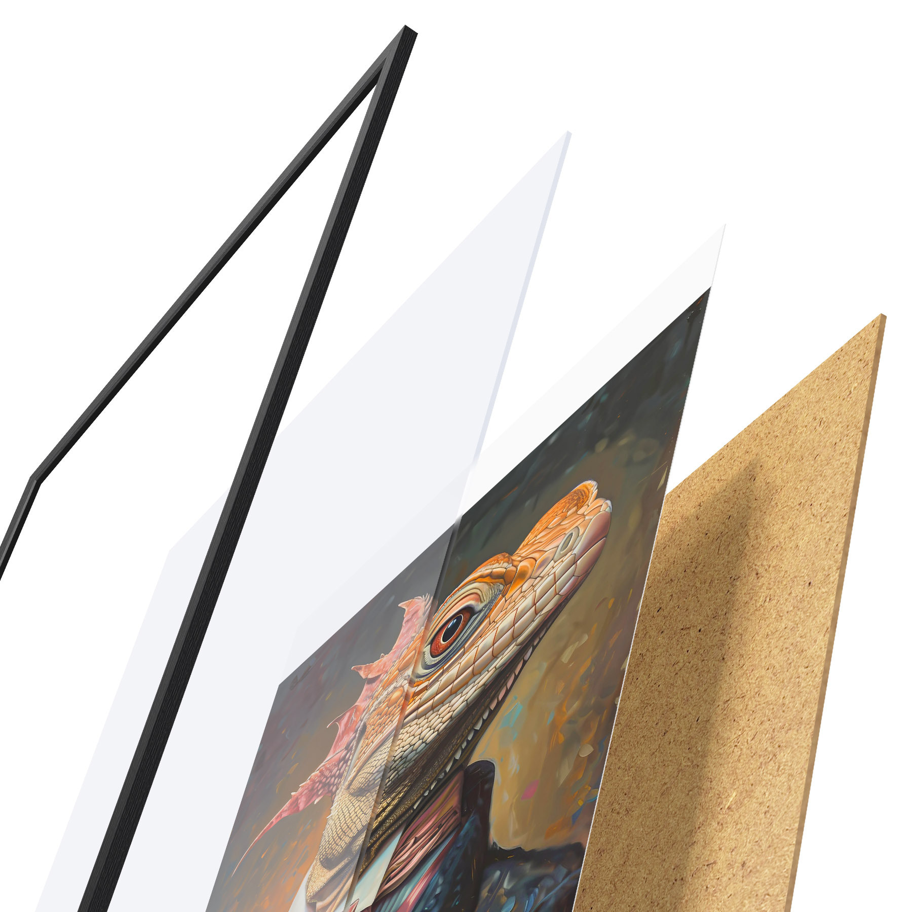 Plakatą sudaro rėmas, pleksiklas, atspausdintas vaizdas ir medžio drožlių plokštės pagrindas. Plakatą galima iš karto pakabinti ant sienos dėl kitoje pusėje esančių laikiklių.