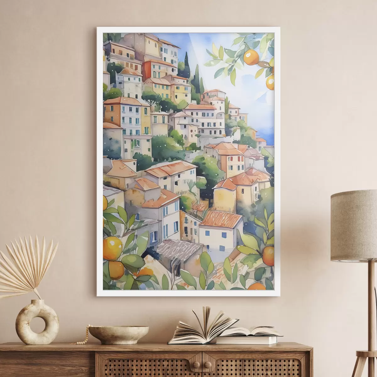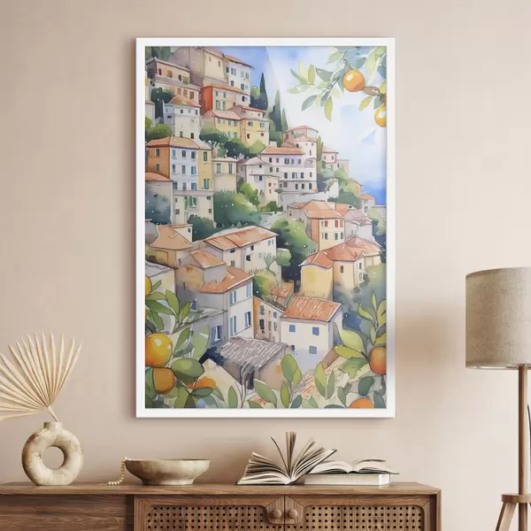 Plakatas Viduržemio jūros architektūra, akvarelė, vasara, apelsinai, senamiestis f38396
