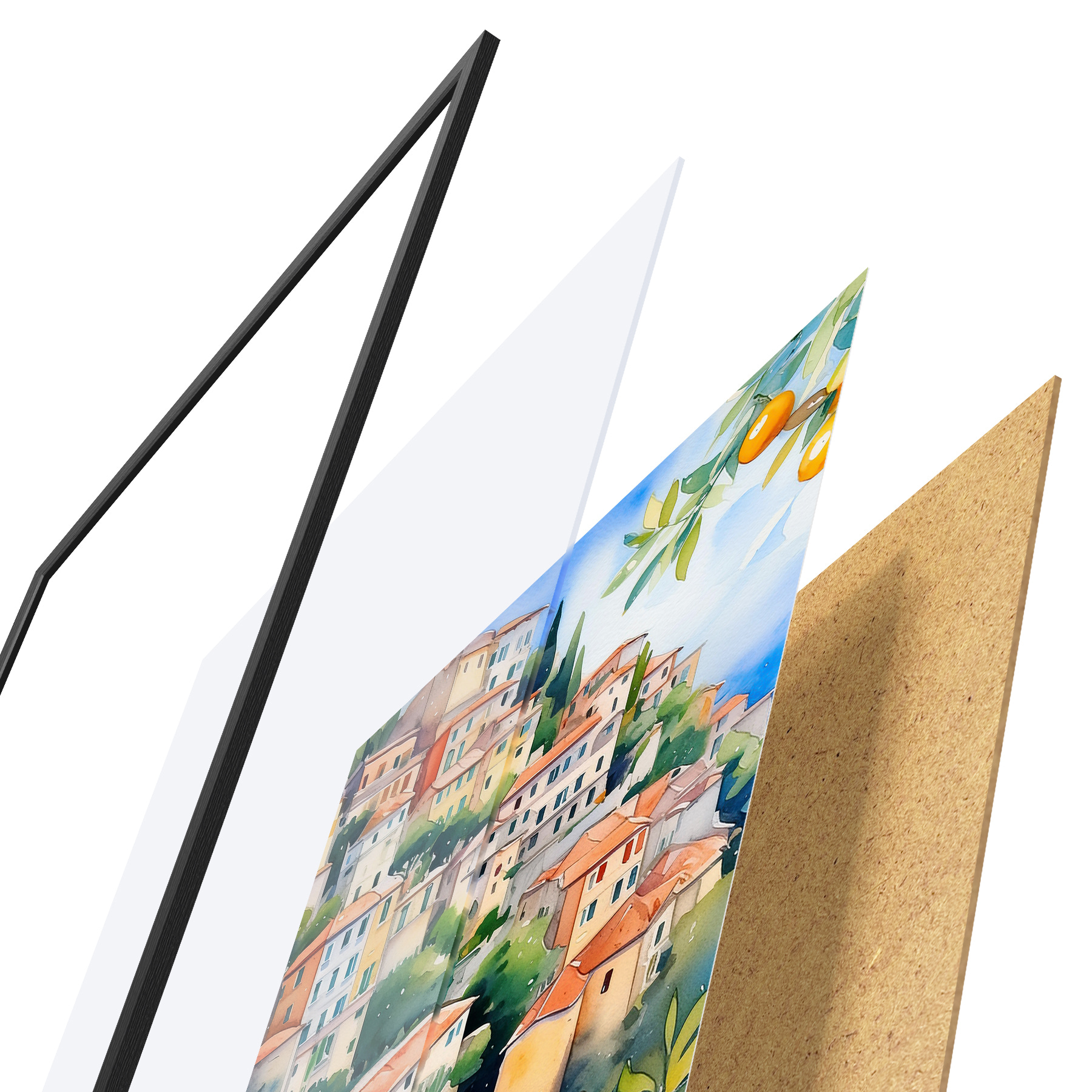 Plakatas Viduržemio jūros architektūra, akvarelė, vasara, apelsinai, senamiestis Ne f38396