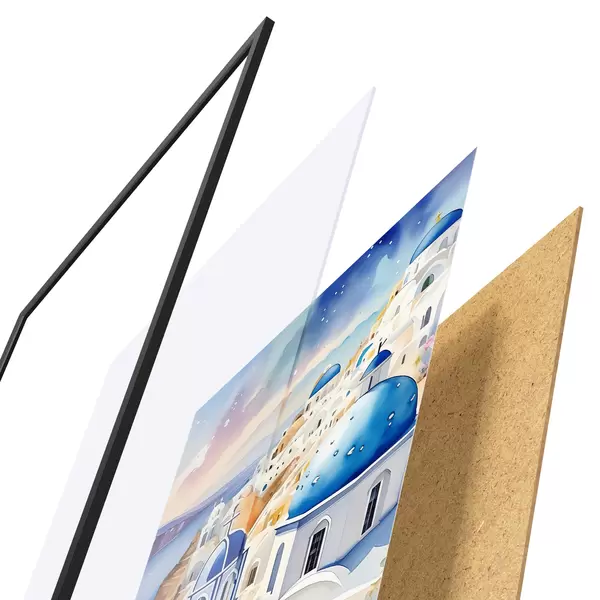 Plakatą sudaro rėmas, pleksiklas, atspausdintas vaizdas ir medžio drožlių plokštės pagrindas. Plakatą galima iš karto pakabinti ant sienos dėl kitoje pusėje esančių laikiklių.