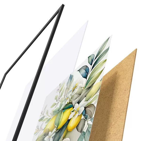 Plakatą sudaro rėmas, pleksiklas, atspausdintas vaizdas ir medžio drožlių plokštės pagrindas. Plakatą galima iš karto pakabinti ant sienos dėl kitoje pusėje esančių laikiklių.