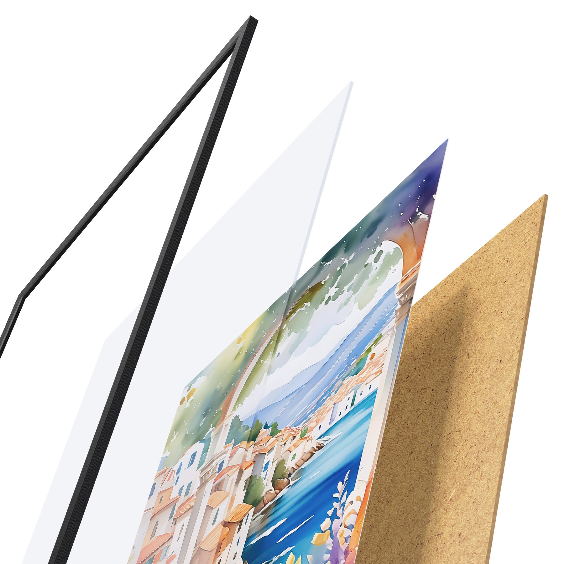 Plakatą sudaro rėmas, pleksiklas, atspausdintas vaizdas ir medžio drožlių plokštės pagrindas. Plakatą galima iš karto pakabinti ant sienos dėl kitoje pusėje esančių laikiklių.