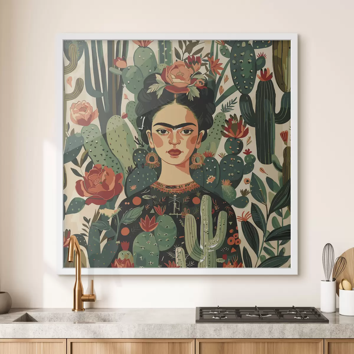 Plakatas Žaliojo stiliaus Frida kaktusuose f38415