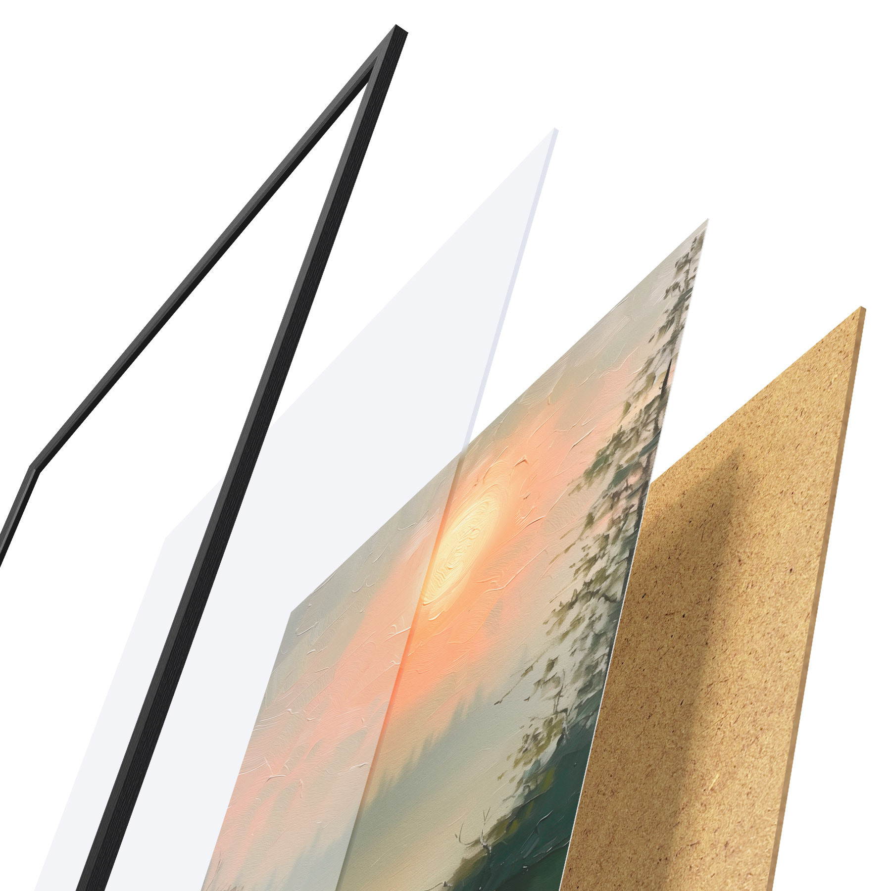 Plakatą sudaro rėmas, pleksiklas, atspausdintas vaizdas ir medžio drožlių plokštės pagrindas. Plakatą galima iš karto pakabinti ant sienos dėl kitoje pusėje esančių laikiklių.