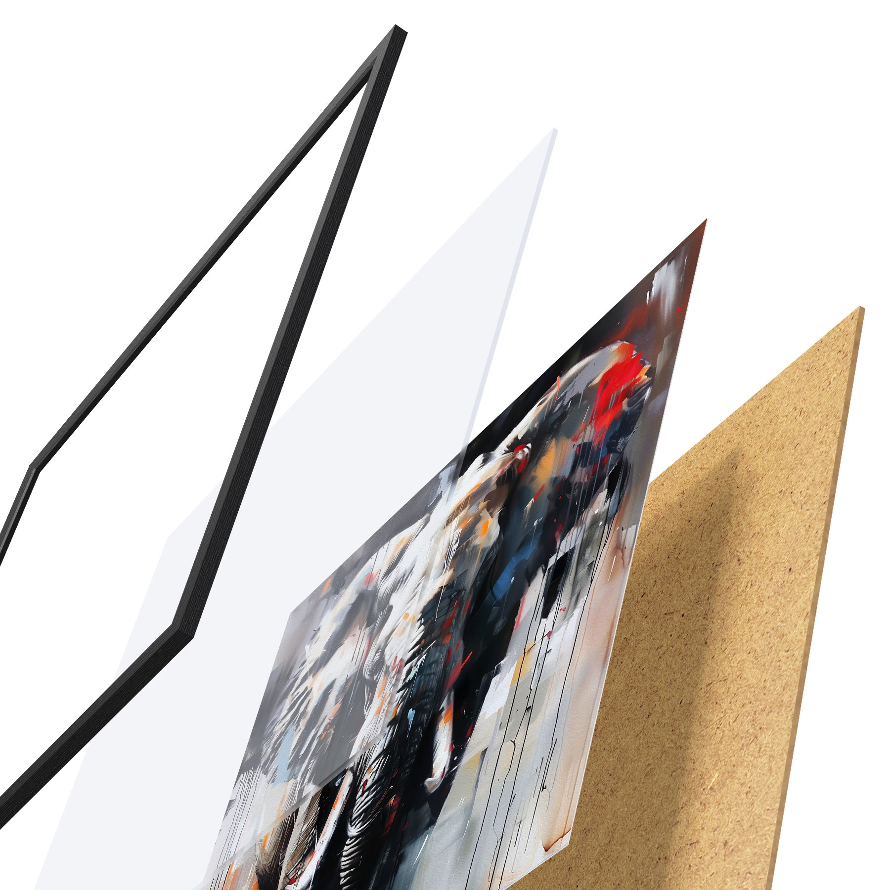 Plakatą sudaro rėmas, pleksiklas, atspausdintas vaizdas ir medžio drožlių plokštės pagrindas. Plakatą galima iš karto pakabinti ant sienos dėl kitoje pusėje esančių laikiklių.
