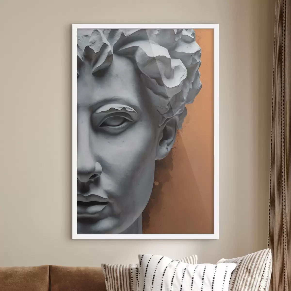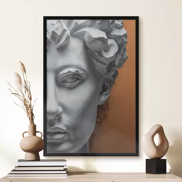 Plakatas Statula, vaizduojanti vyro veidą f38433