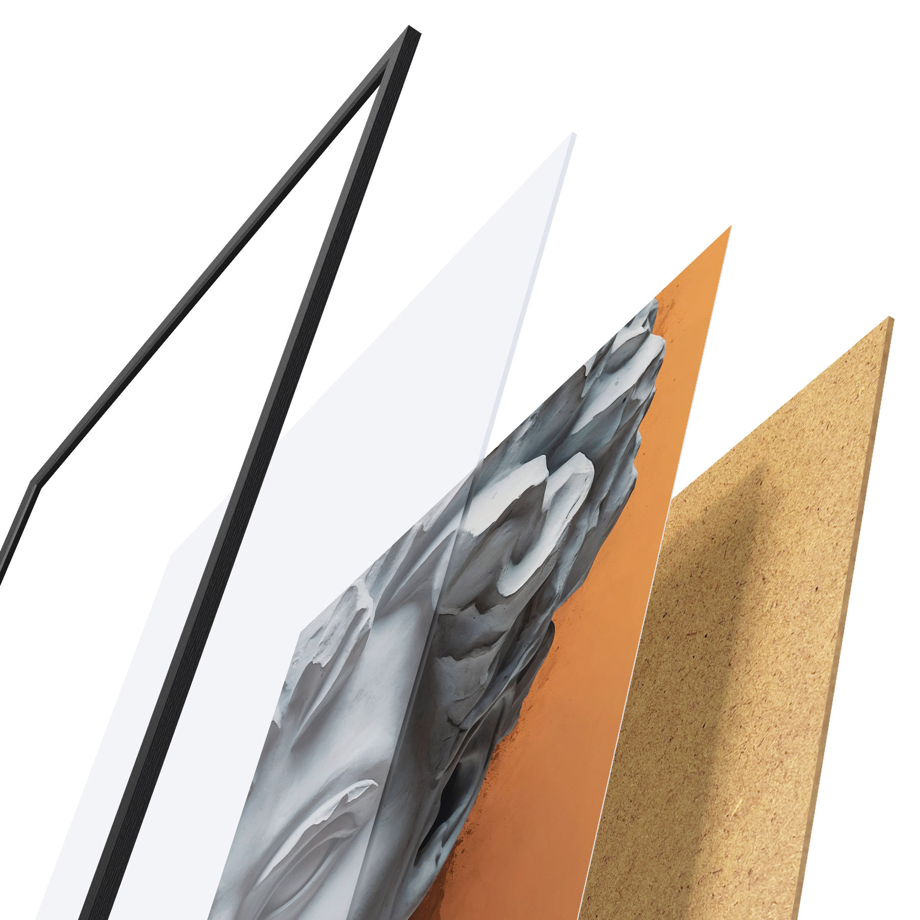 Plakatą sudaro rėmas, pleksiklas, atspausdintas vaizdas ir medžio drožlių plokštės pagrindas. Plakatą galima iš karto pakabinti ant sienos dėl kitoje pusėje esančių laikiklių.