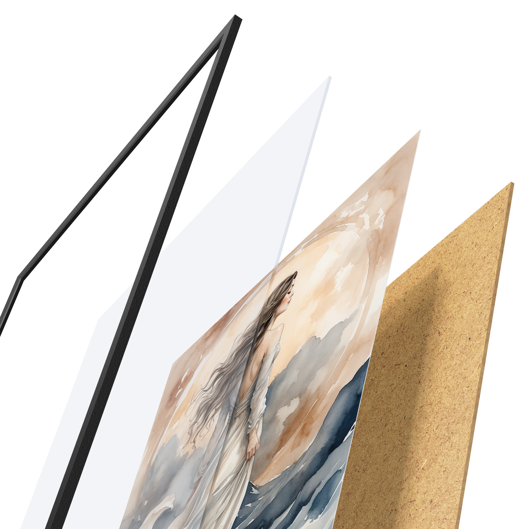 Plakatą sudaro rėmas, pleksiklas, atspausdintas vaizdas ir medžio drožlių plokštės pagrindas. Plakatą galima iš karto pakabinti ant sienos dėl kitoje pusėje esančių laikiklių.