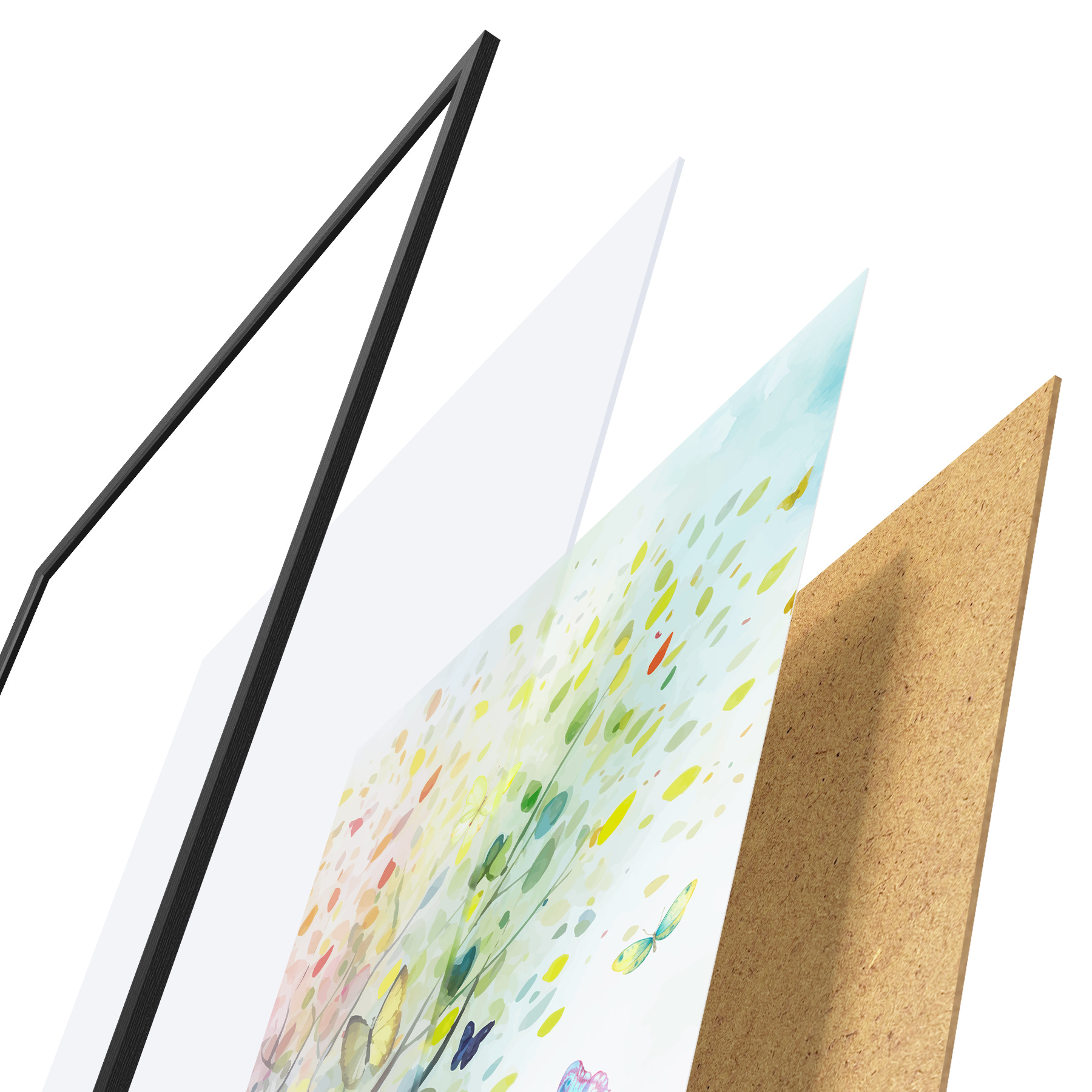 Plakatą sudaro rėmas, pleksiklas, atspausdintas vaizdas ir medžio drožlių plokštės pagrindas. Plakatą galima iš karto pakabinti ant sienos dėl kitoje pusėje esančių laikiklių.