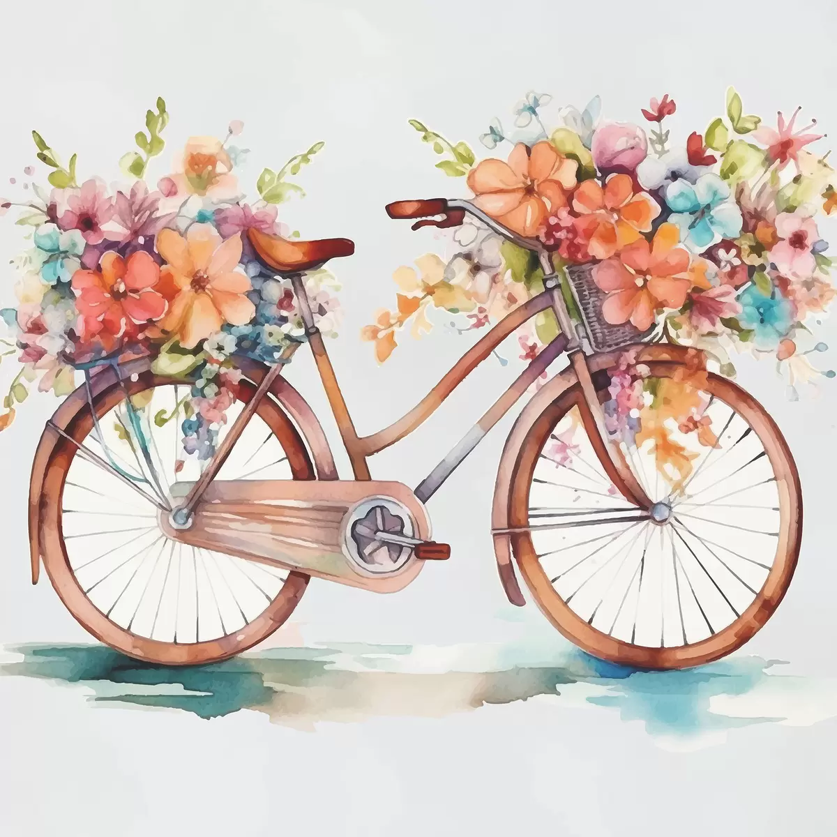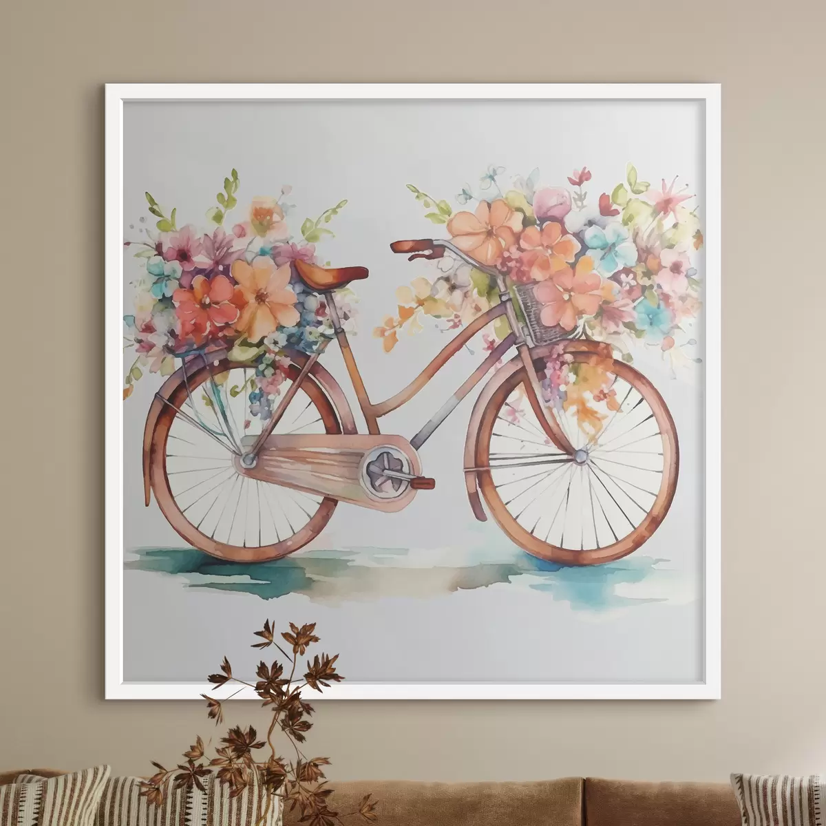Plakatas ryškiaspalvis dviratis, akvareliniai dažai Ne f38447