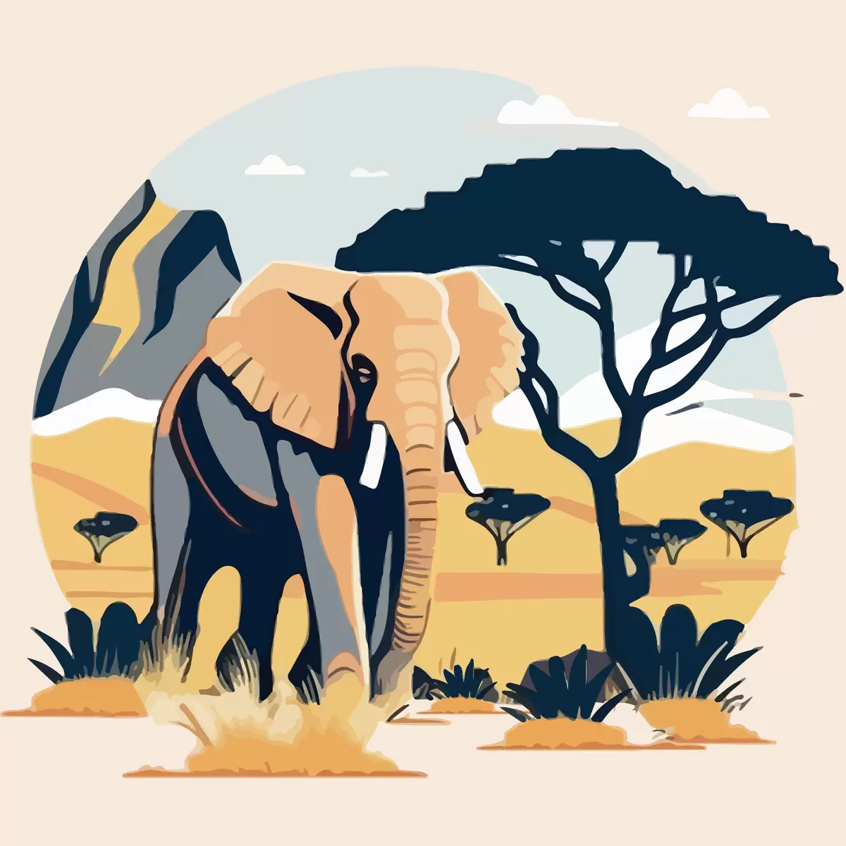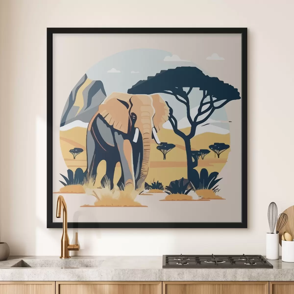 Plakatas dramblys, medžiai, kalnai, safaris, pastelė Ne f38448