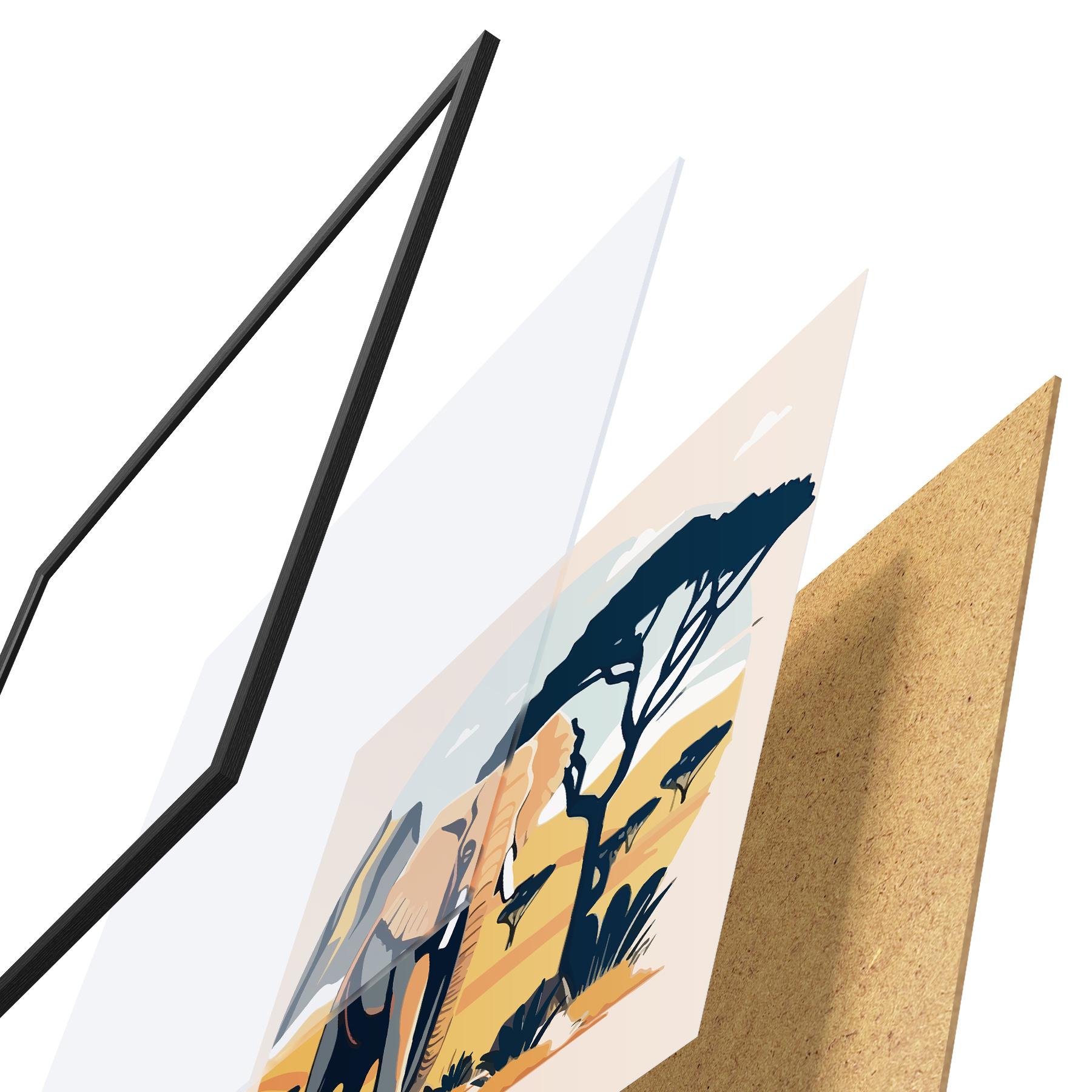 Plakatą sudaro rėmas, pleksiklas, atspausdintas vaizdas ir medžio drožlių plokštės pagrindas. Plakatą galima iš karto pakabinti ant sienos dėl kitoje pusėje esančių laikiklių.