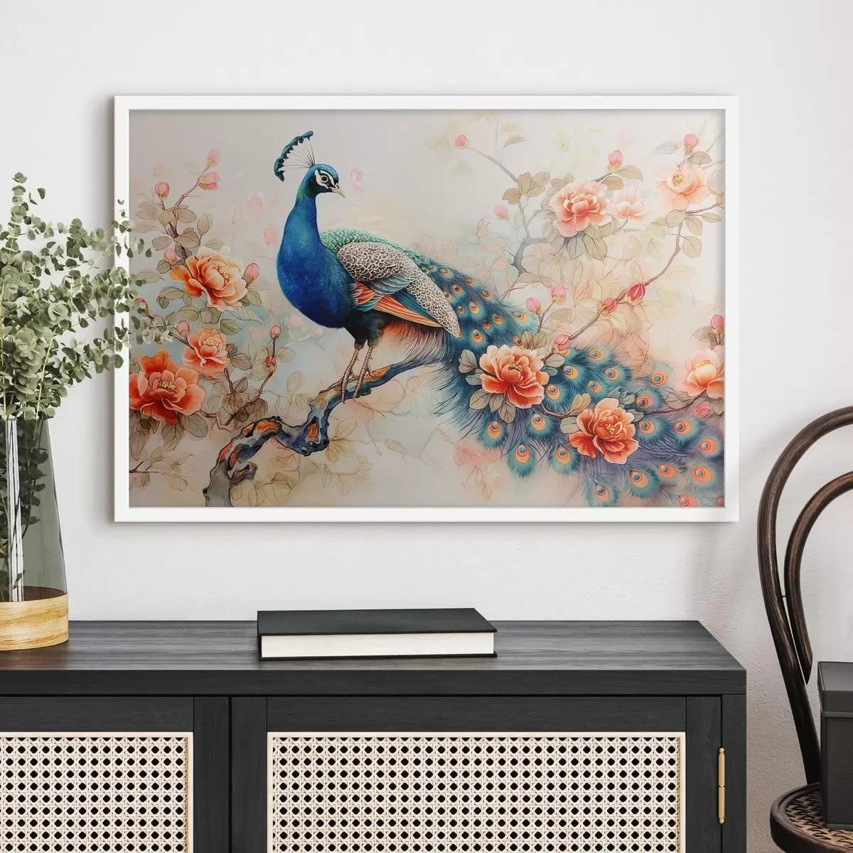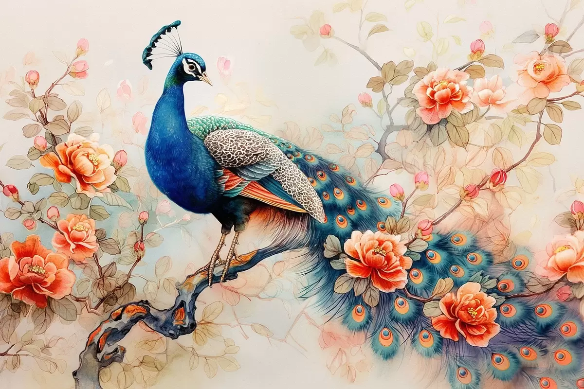Plakatas Vaizdas, rodantis povas ant šakos su gėlėmis f38452