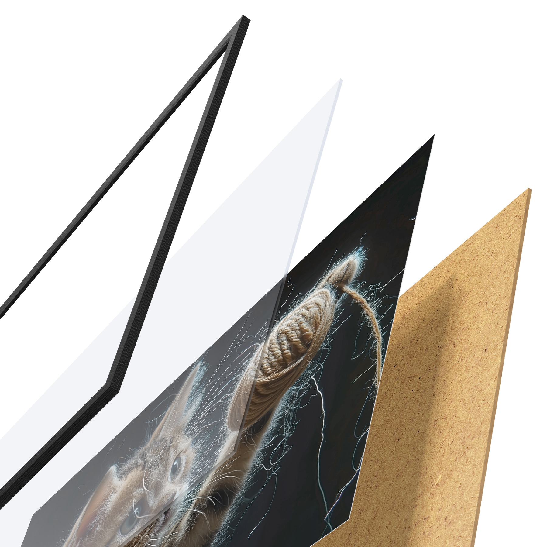 Plakatą sudaro rėmas, pleksiklas, atspausdintas vaizdas ir medžio drožlių plokštės pagrindas. Plakatą galima iš karto pakabinti ant sienos dėl kitoje pusėje esančių laikiklių.