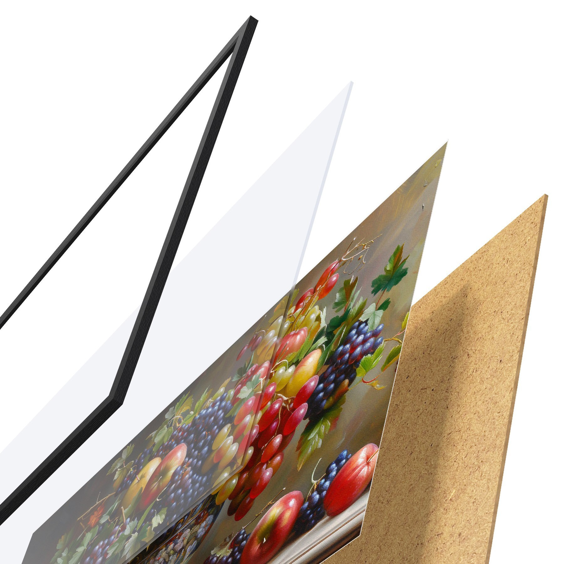Plakatą sudaro rėmas, pleksiklas, atspausdintas vaizdas ir medžio drožlių plokštės pagrindas. Plakatą galima iš karto pakabinti ant sienos dėl kitoje pusėje esančių laikiklių.