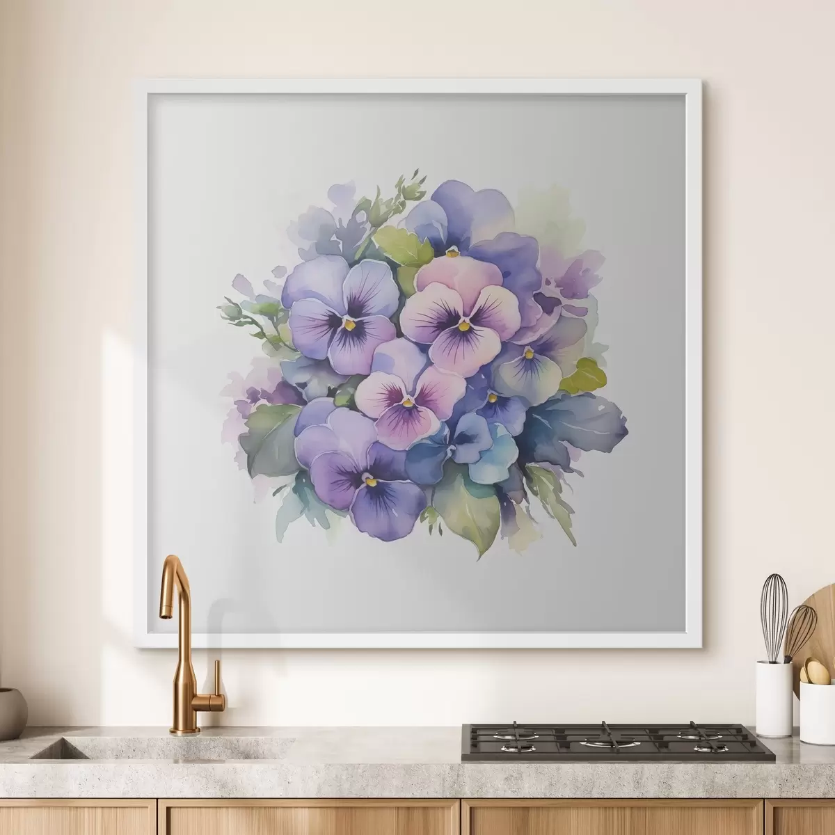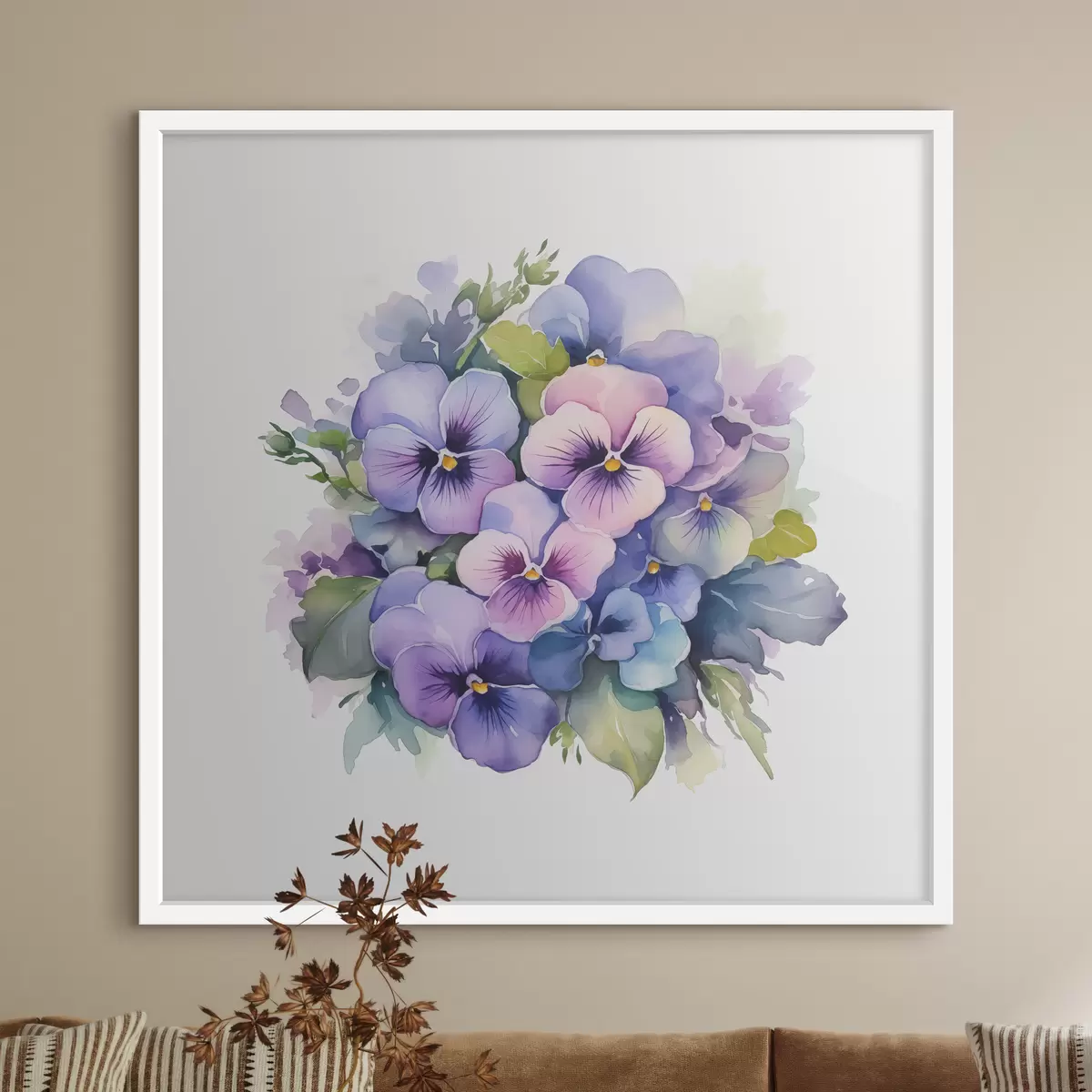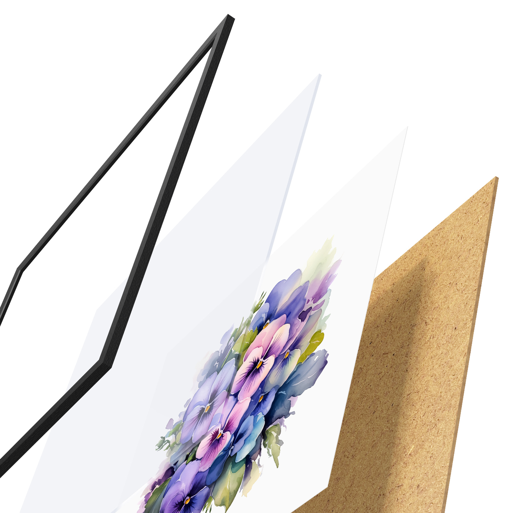 Plakatas Violetinė akvarelės iliustracija, puokštė, gėlės, mėlyna, violetinė, žalia spalva Ne f38486