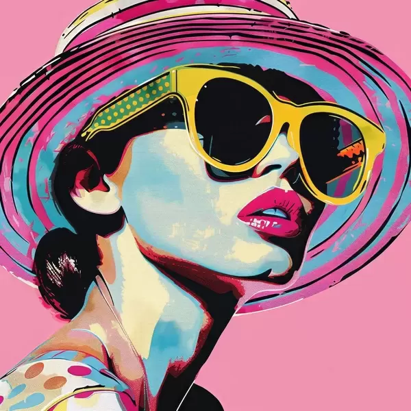 Plakatas Spalvingas stilingos moters su akiniais nuo saulės portretas f38508
