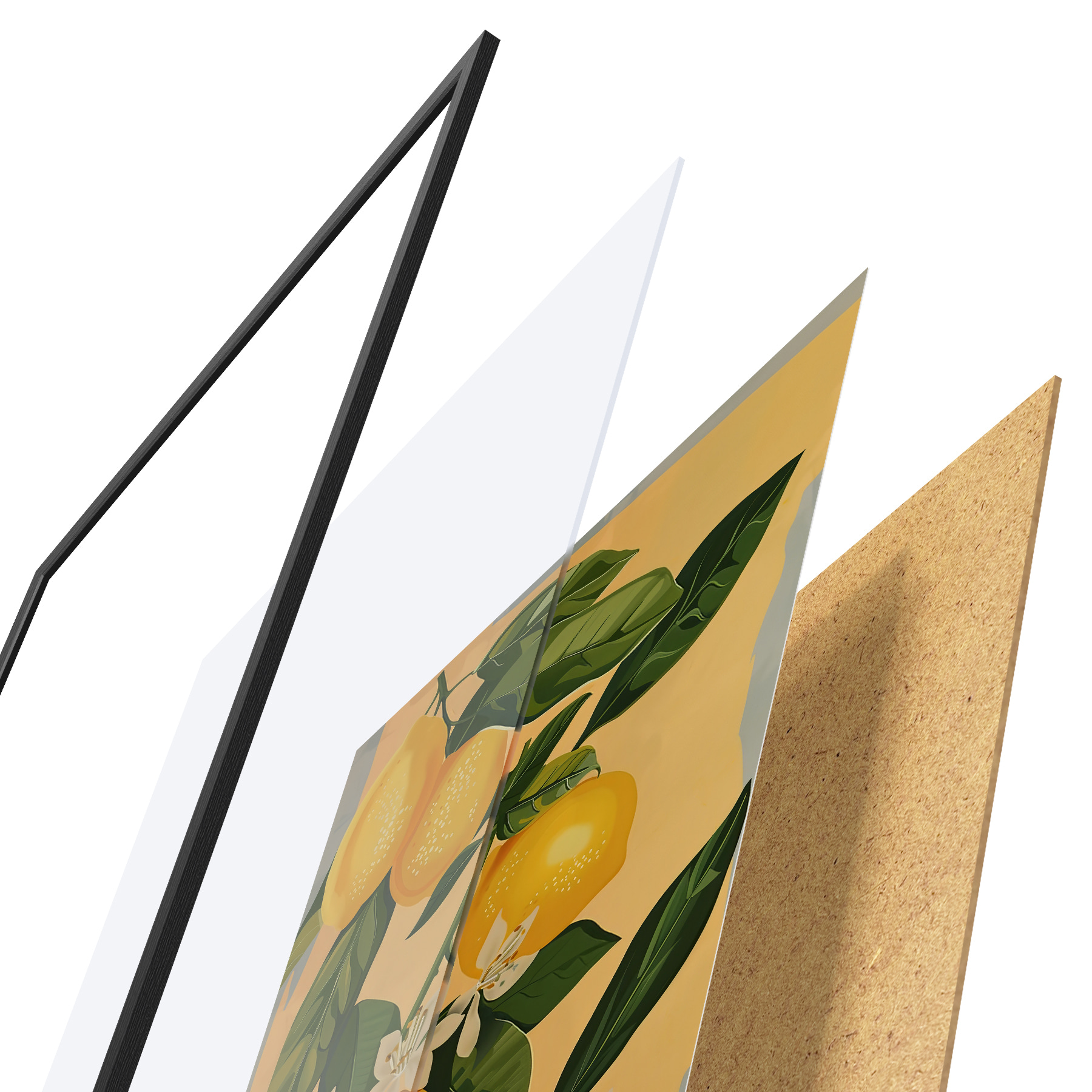 Plakatą sudaro rėmas, pleksiklas, atspausdintas vaizdas ir medžio drožlių plokštės pagrindas. Plakatą galima iš karto pakabinti ant sienos dėl kitoje pusėje esančių laikiklių.