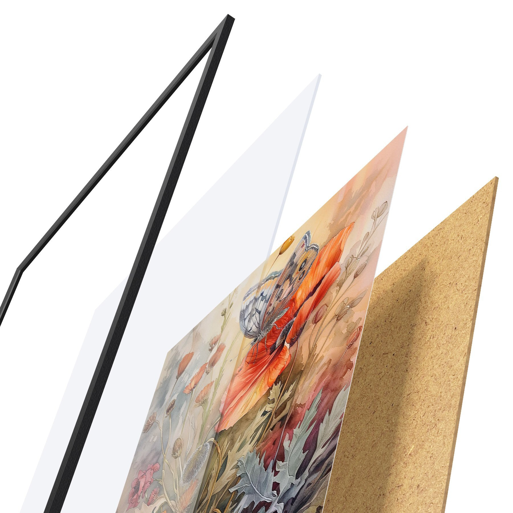 Plakatą sudaro rėmas, pleksiklas, atspausdintas vaizdas ir medžio drožlių plokštės pagrindas. Plakatą galima iš karto pakabinti ant sienos dėl kitoje pusėje esančių laikiklių.