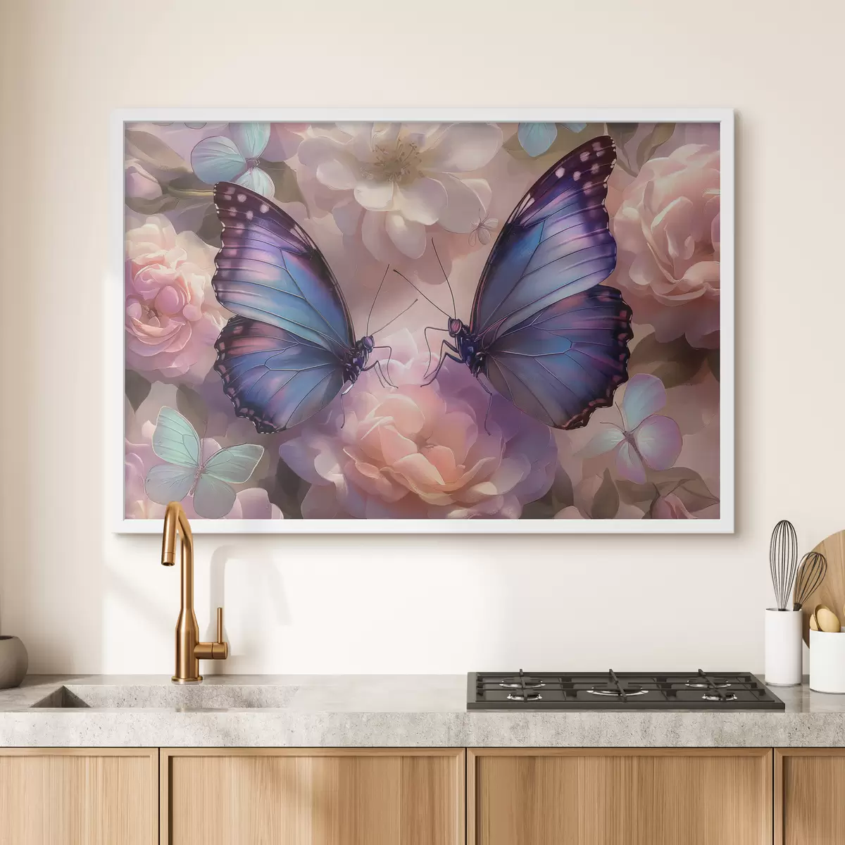 Plakatas Du akvarelės stiliaus gėlių drugeliai Ne f38534