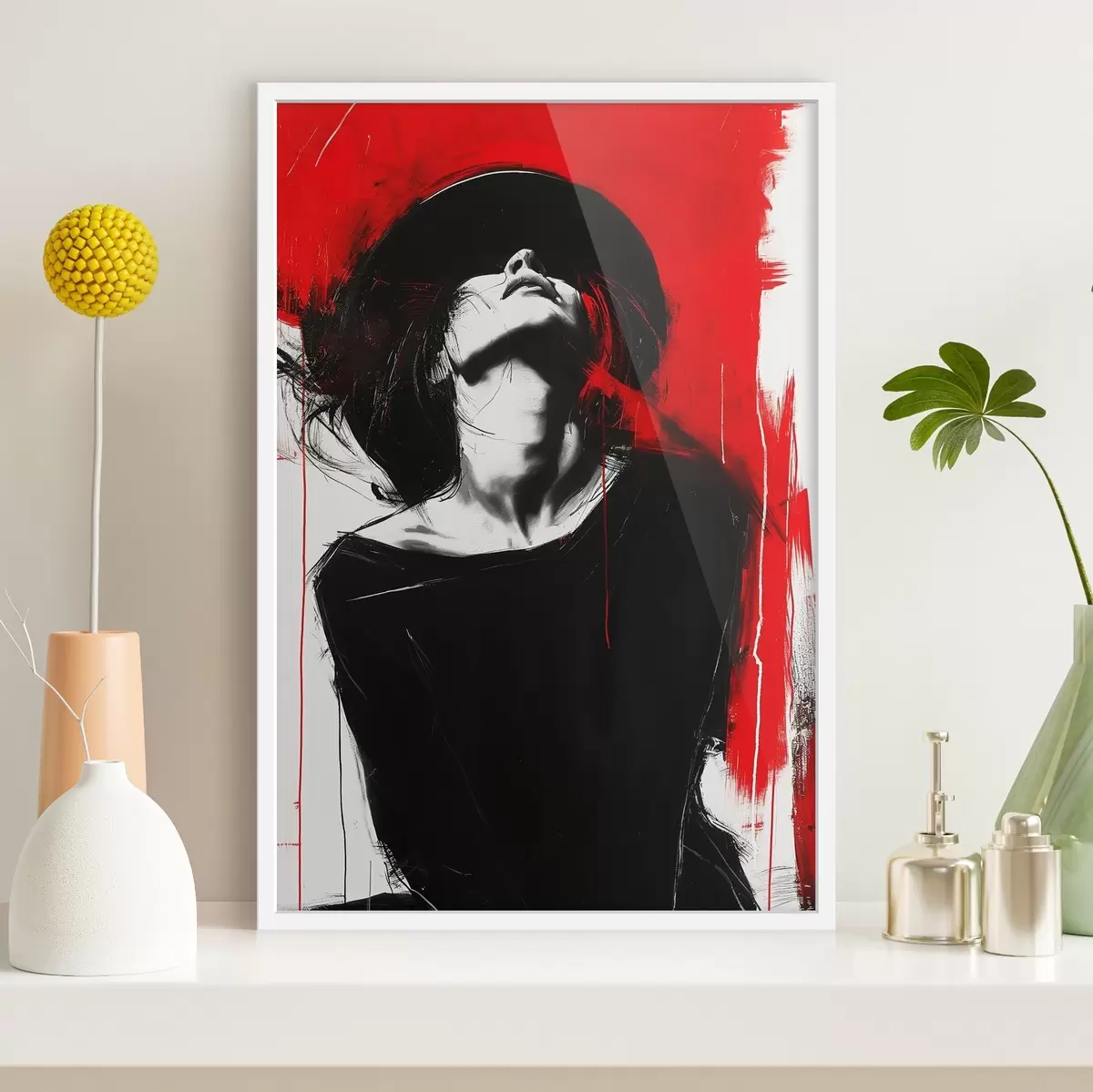 Plakatas Moteris su juoda skrybėle raudoname fone Ne f38561