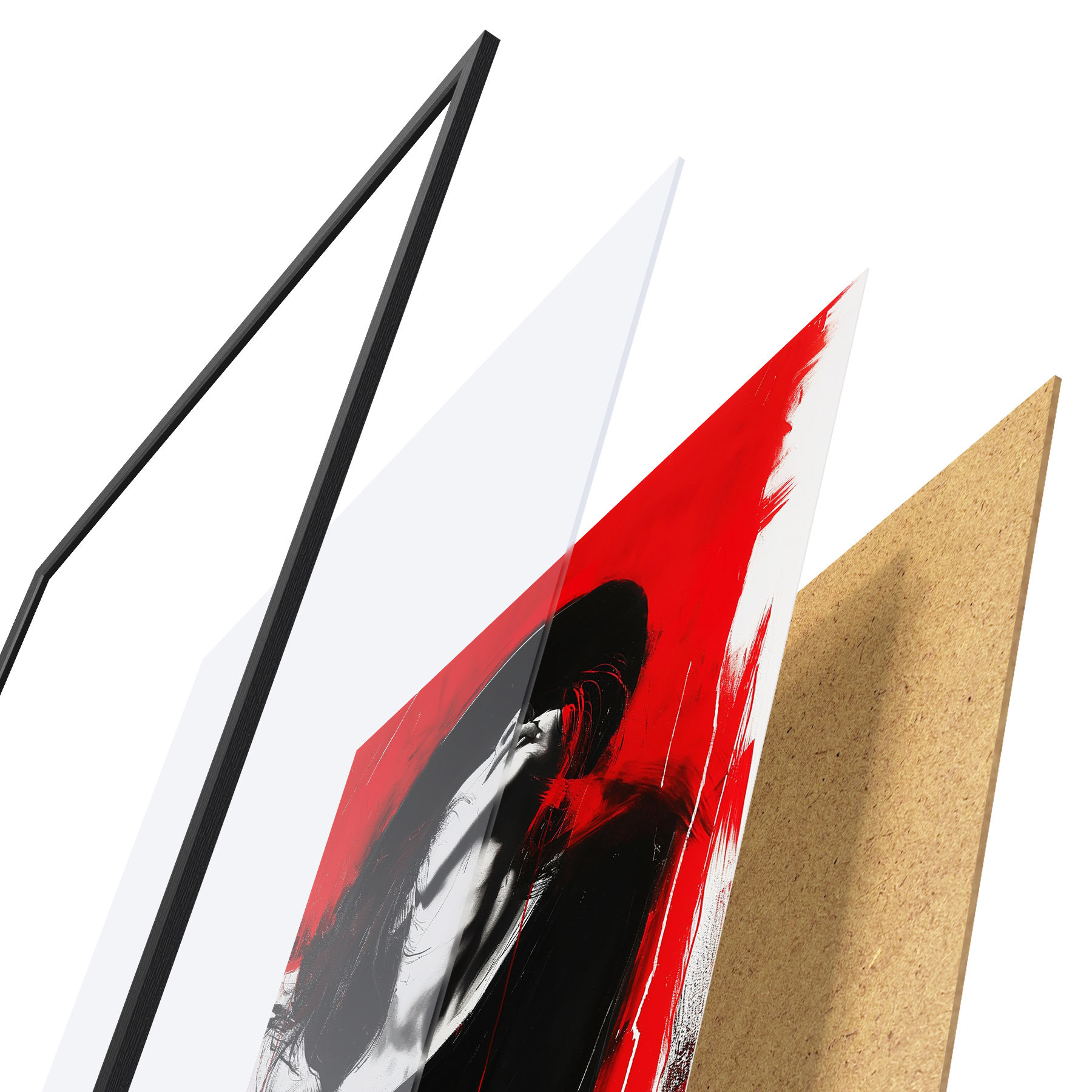 Plakatą sudaro rėmas, pleksiklas, atspausdintas vaizdas ir medžio drožlių plokštės pagrindas. Plakatą galima iš karto pakabinti ant sienos dėl kitoje pusėje esančių laikiklių.