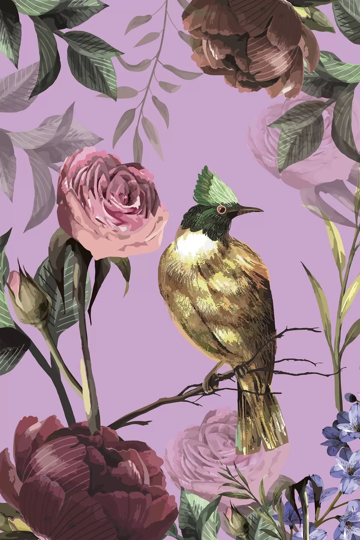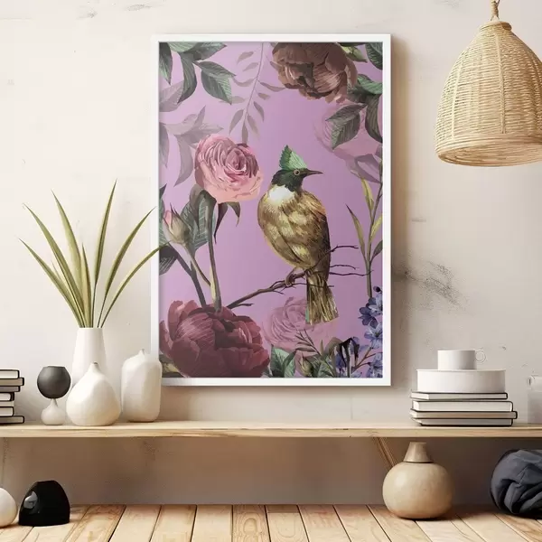 Plakatas Paukštis ant šakos su gėlėmis Ne f38564