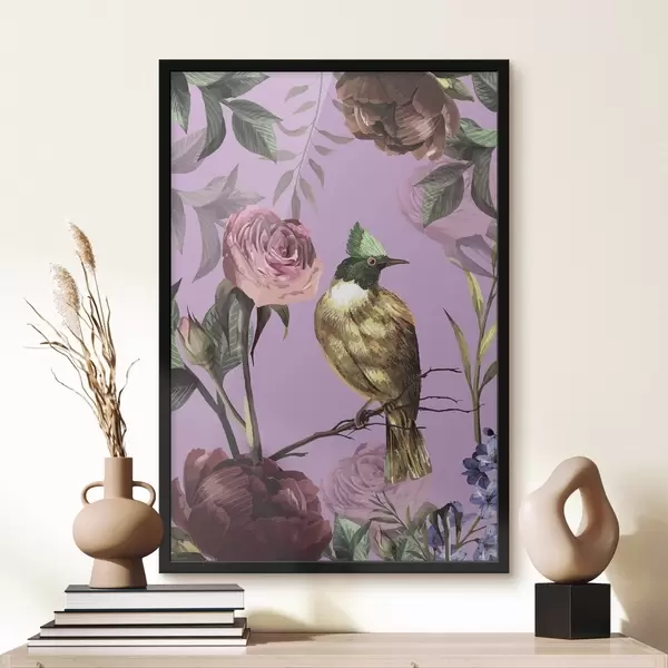 Plakatas Paukštis ant šakos su gėlėmis f38564