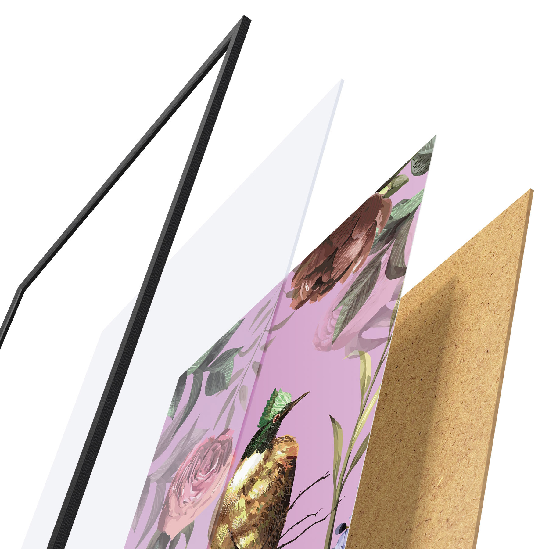 Plakatą sudaro rėmas, pleksiklas, atspausdintas vaizdas ir medžio drožlių plokštės pagrindas. Plakatą galima iš karto pakabinti ant sienos dėl kitoje pusėje esančių laikiklių.